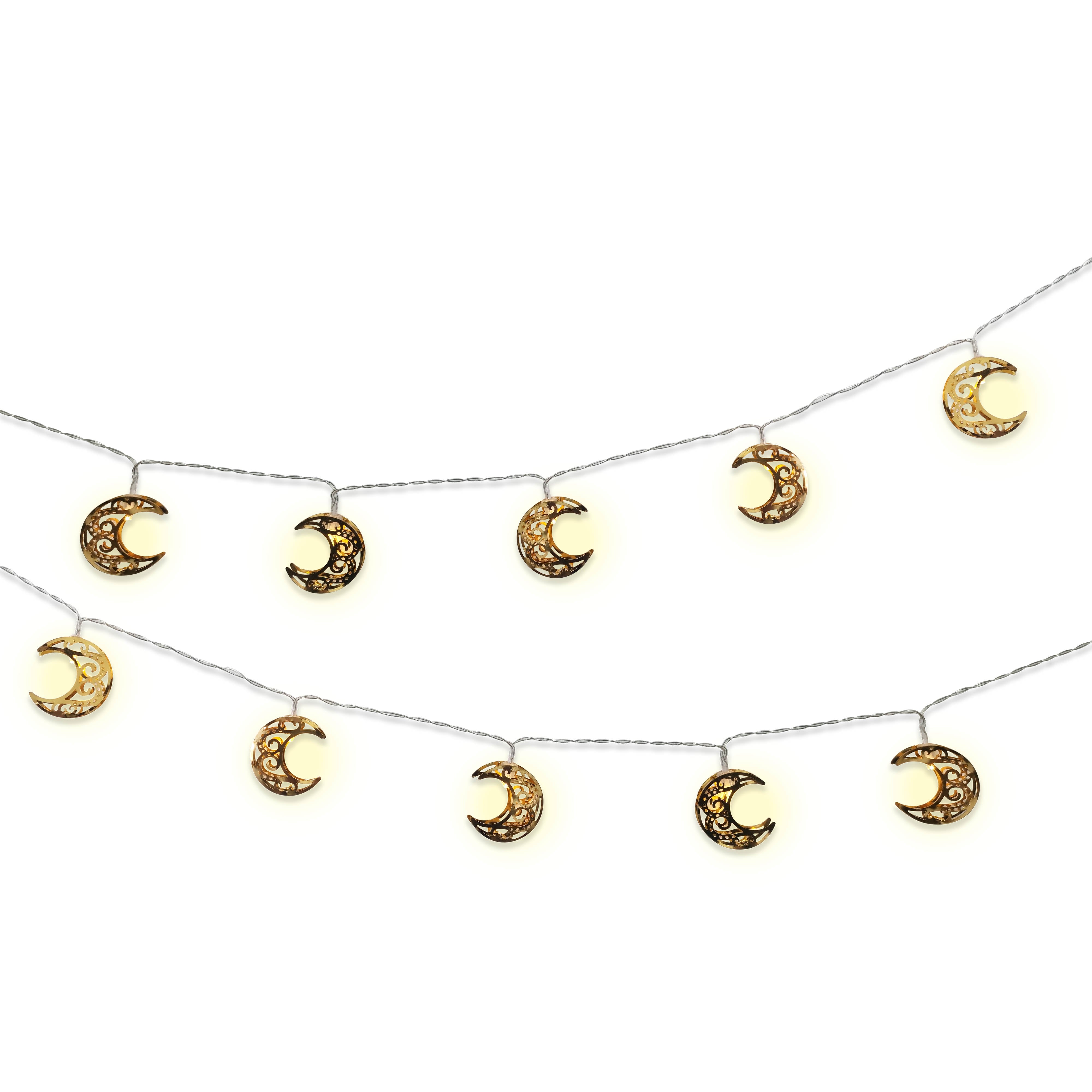 150cm / 10 Battery Powered LED Metal Moon Cut Out Fairy Lights