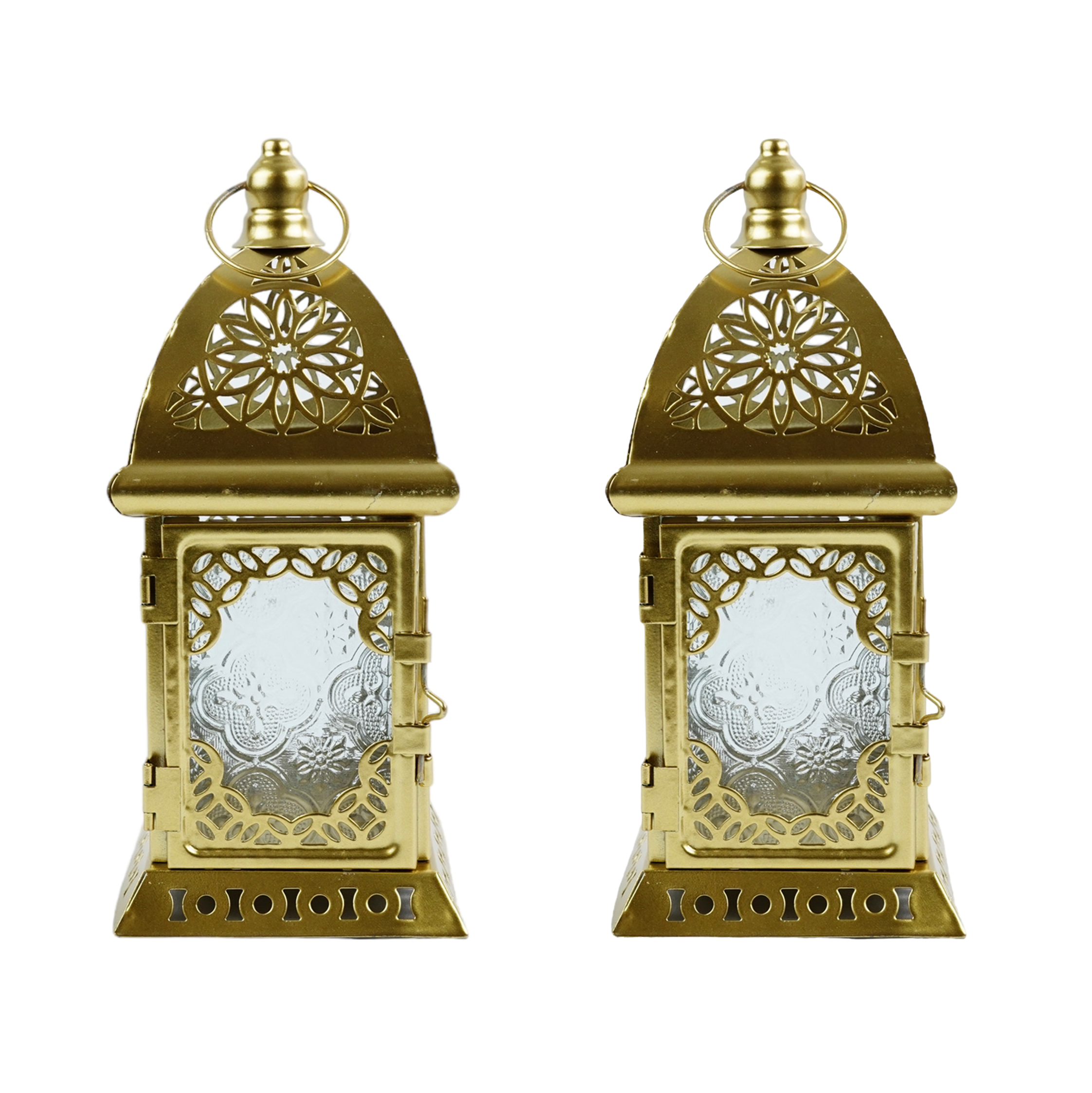 2 x Gold Metal Tea Light Candle Lanterns (YZ003)
