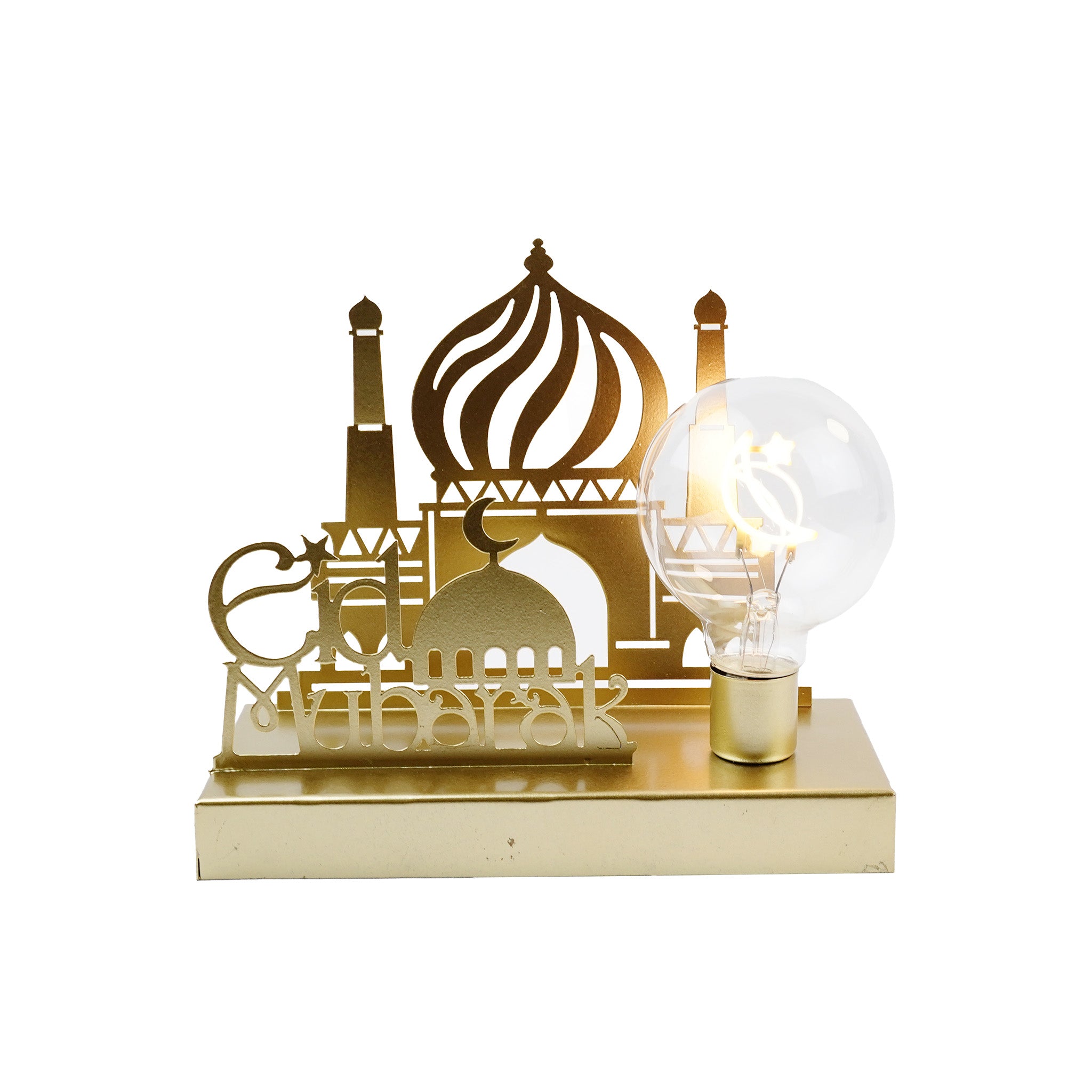Eid Mubarak Brushed Gold Masjid Swirl Dome LED Bulb Tablescape (15936)