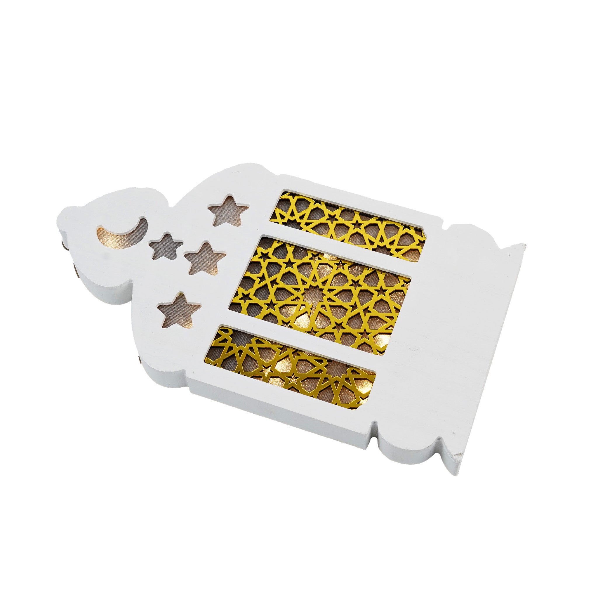 Geometric White MEDIUM Solid Wood Lantern Light Stand (757-88)