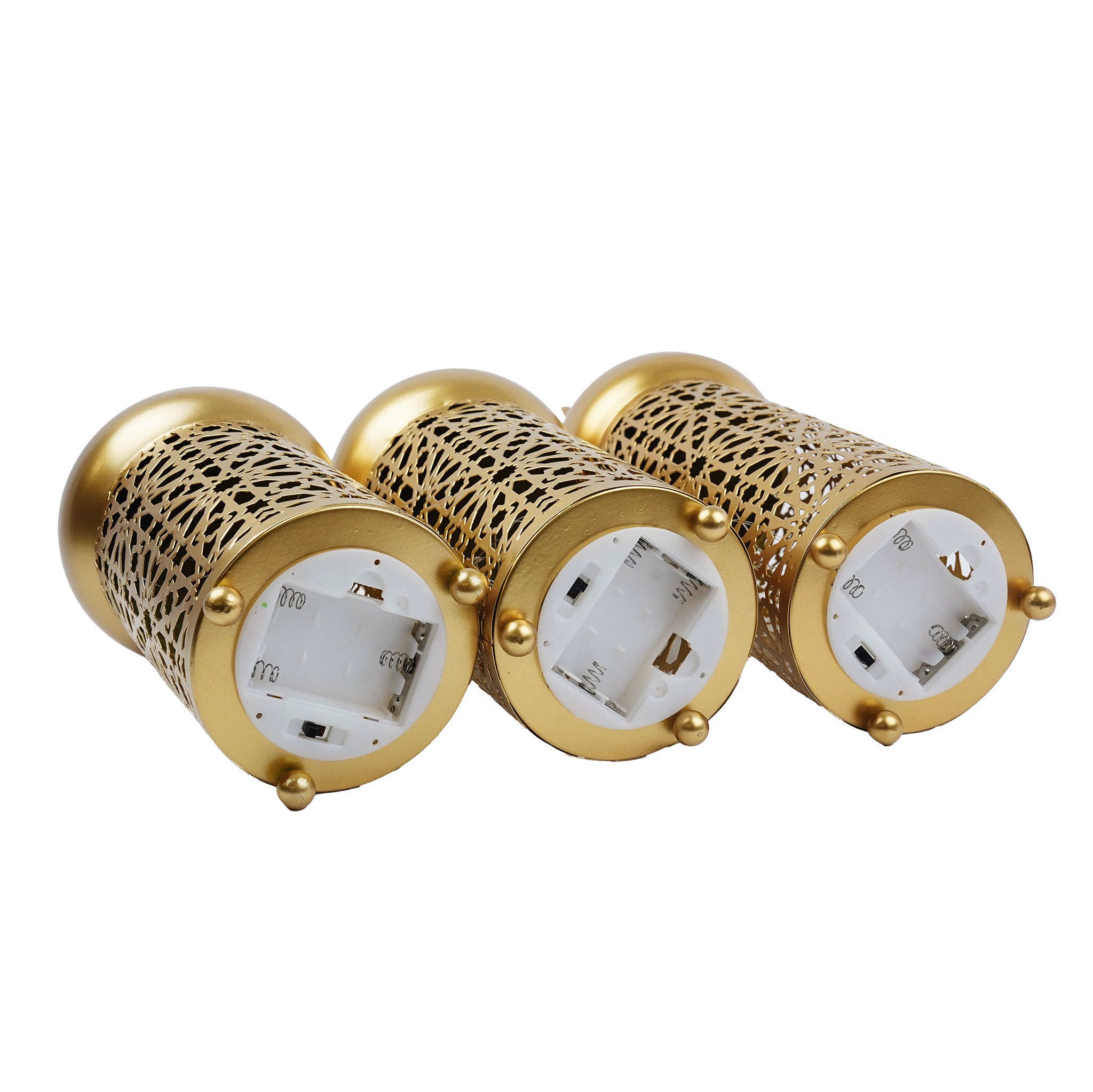 • Set of 3 Gold Minaret LED Lanterns with 3 Different sizes in Small, Medium & Large (One Of Each)