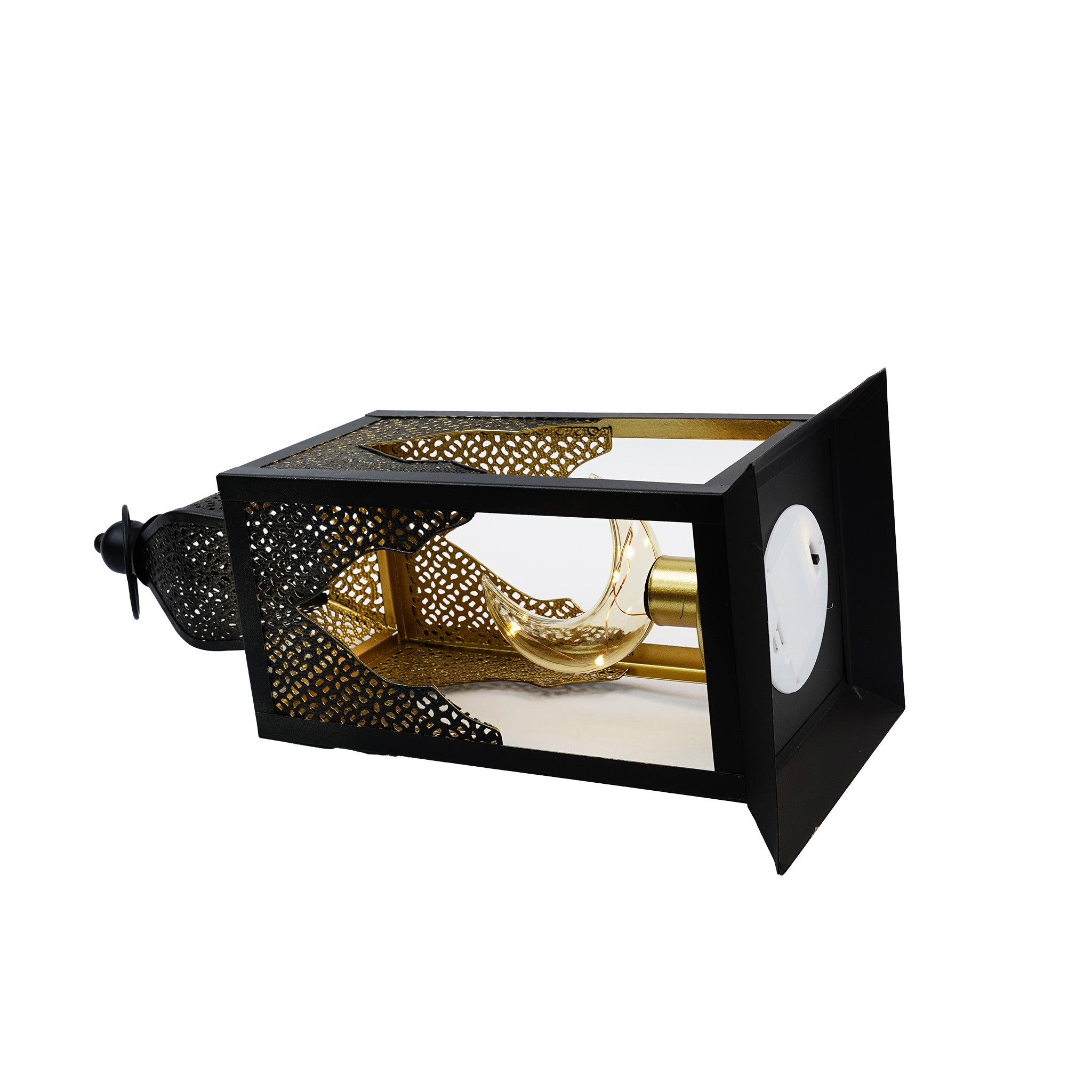Large Black Minaret Moon Shape LED Bulb Metal Lantern (B22907-2)
