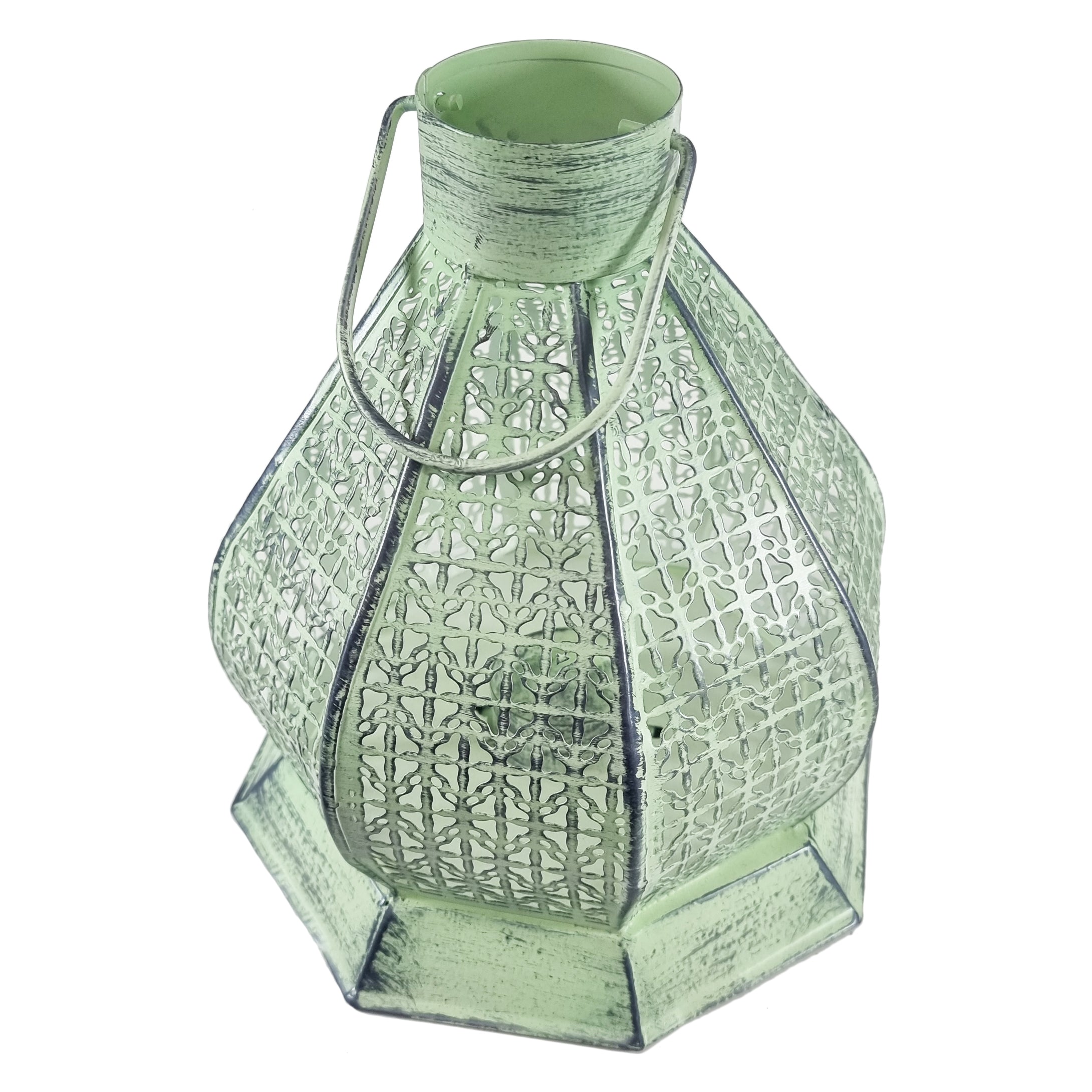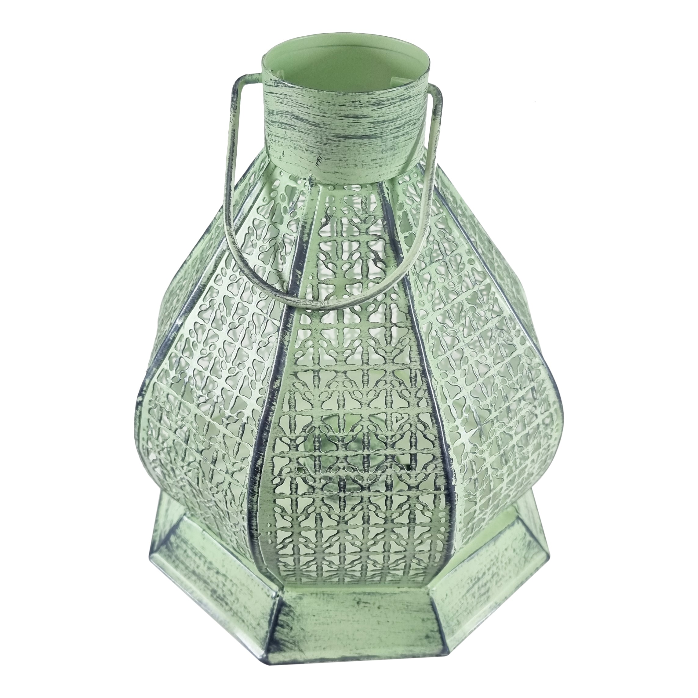 Large Green Antique Perforated Iron Metal Tea Light Candle Lantern (NS-1770B)