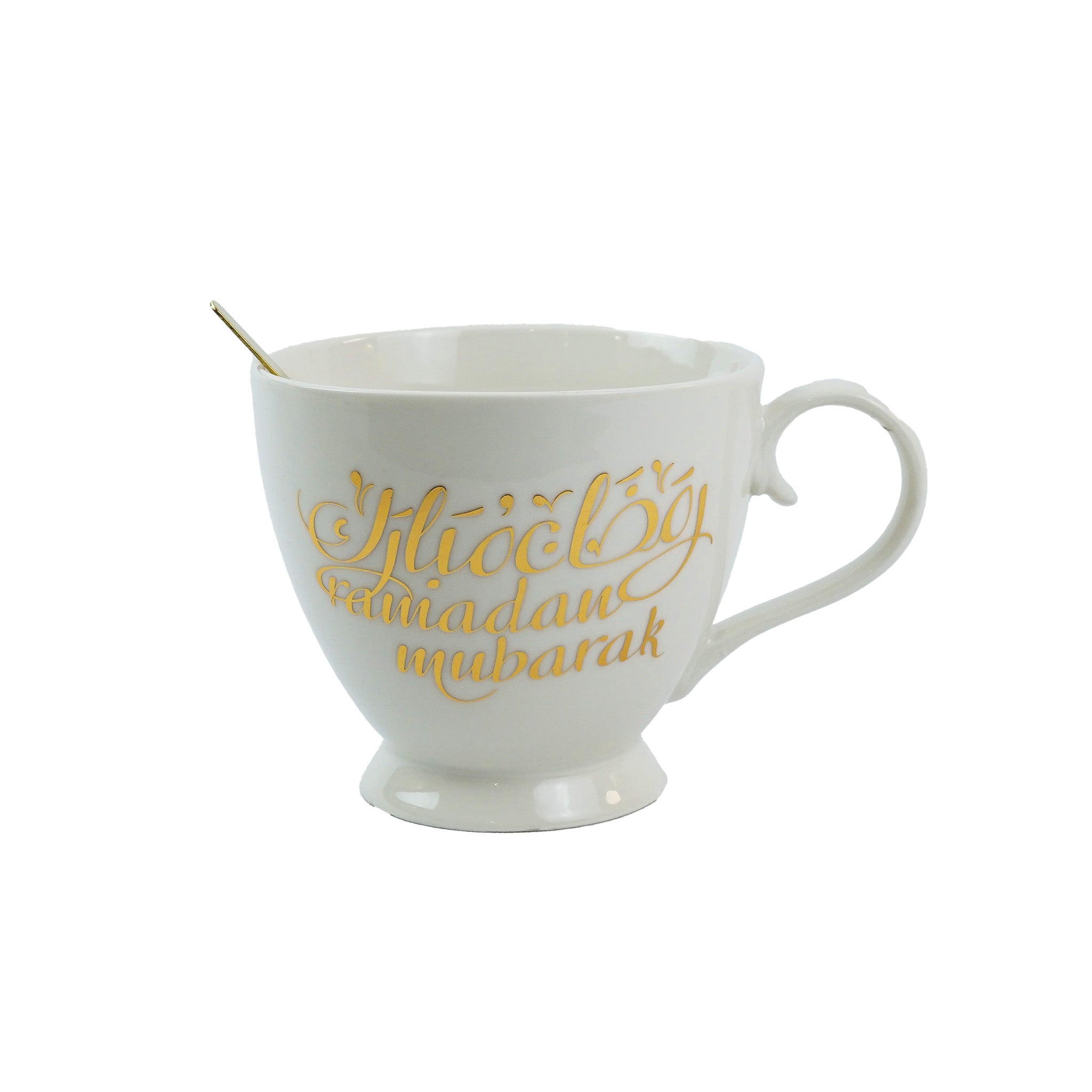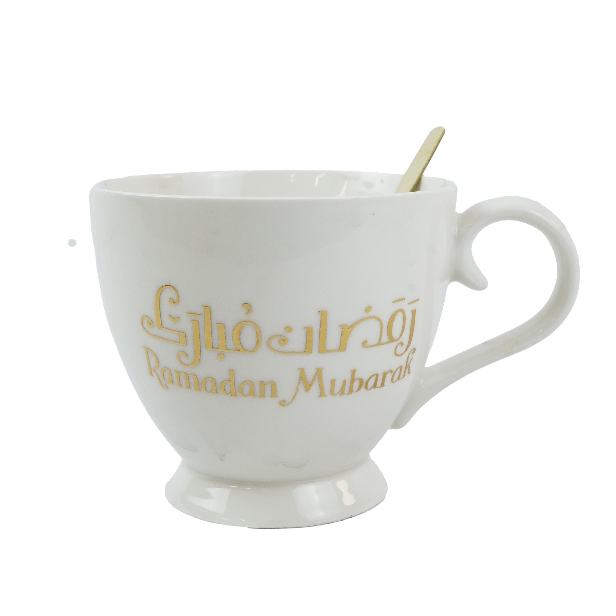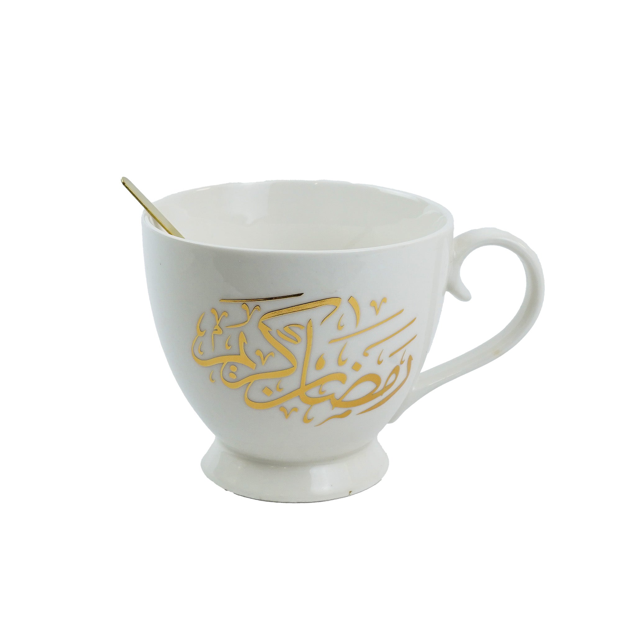 Large White RAMADAN Mugs With Gold Spoon in Gift Box (AB777)