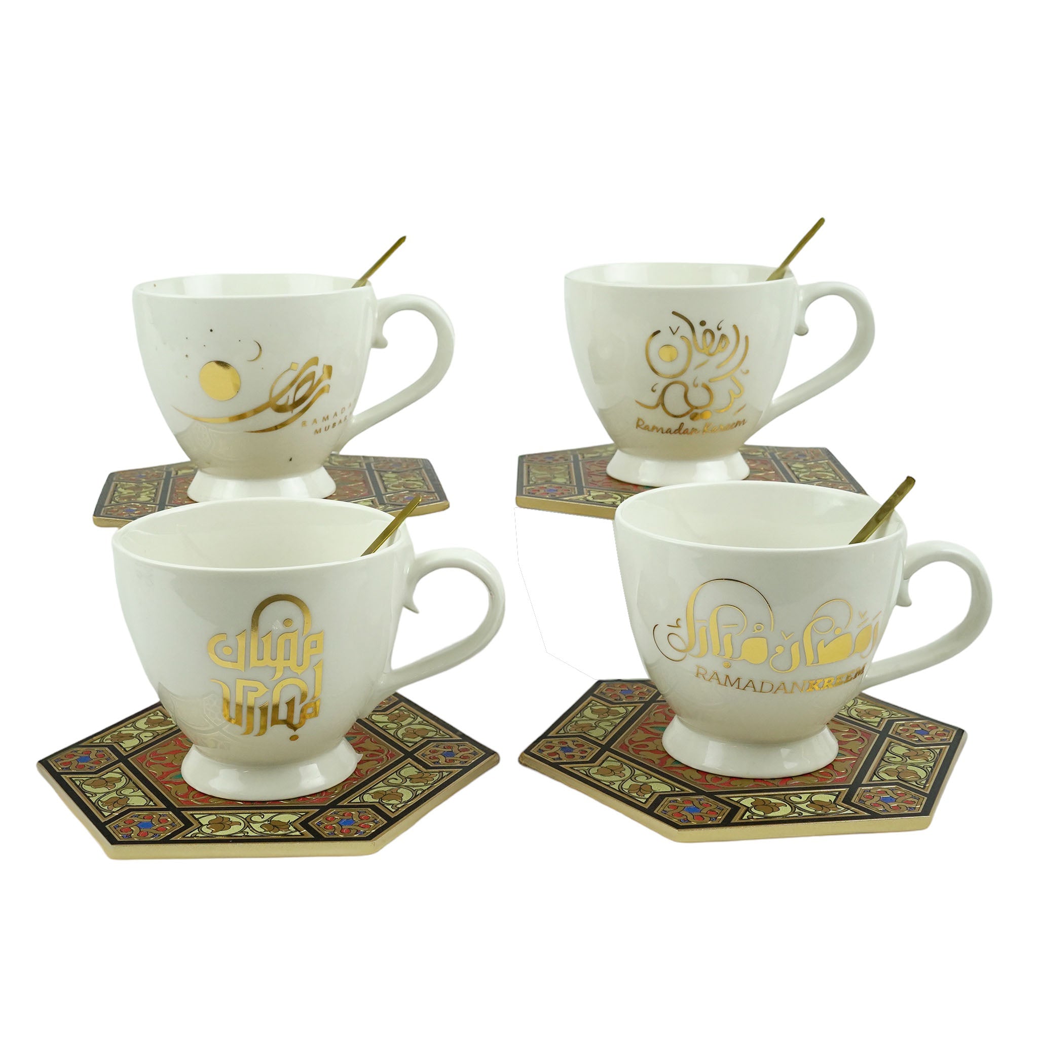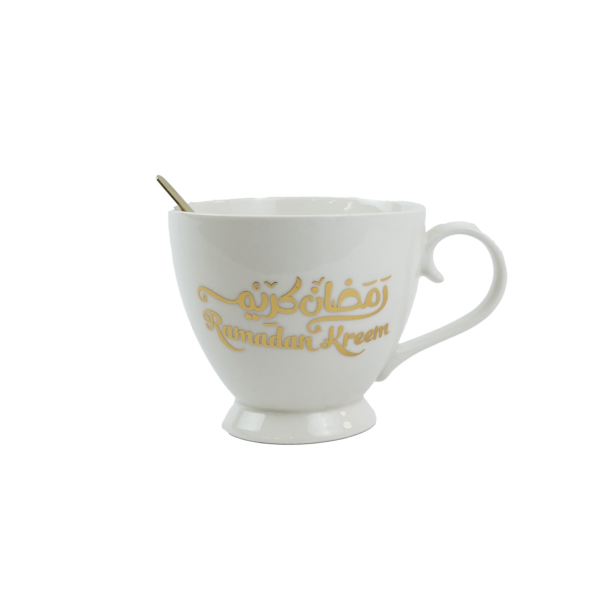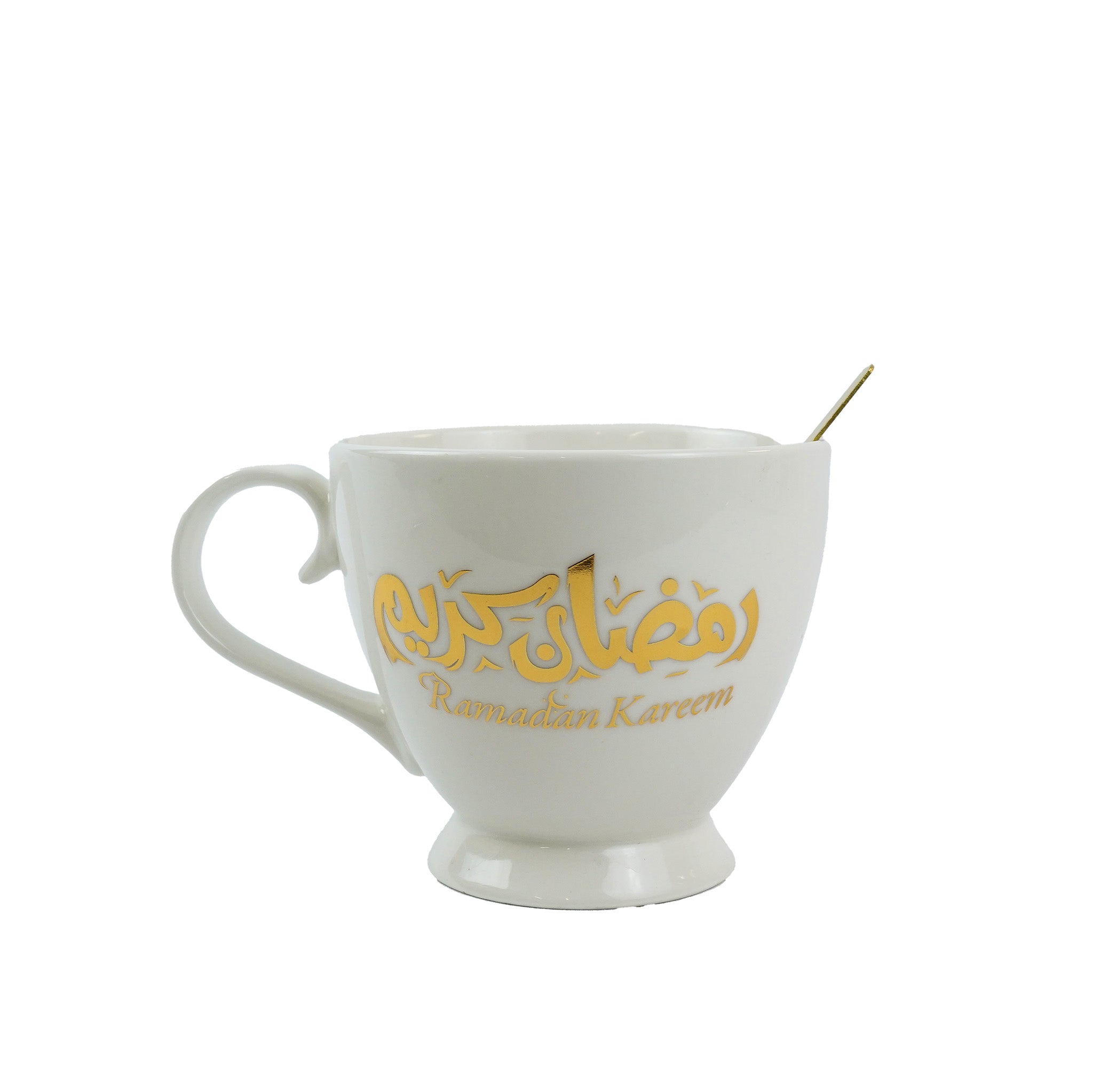 Large White RAMADAN Mugs With Gold Spoon in Gift Box (AB777)