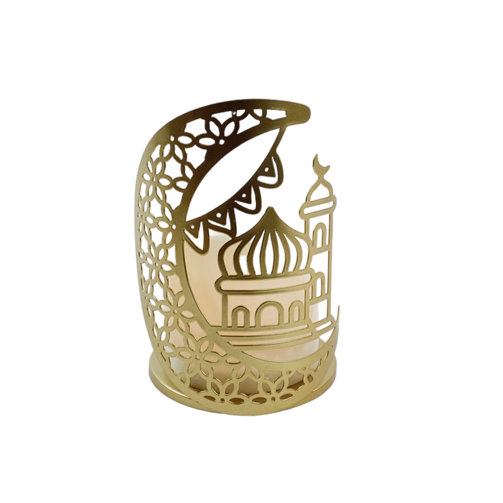 Matte Gold Stencil LED Candle Stencil Cut out Crescent Masjid Tablescape (3021)