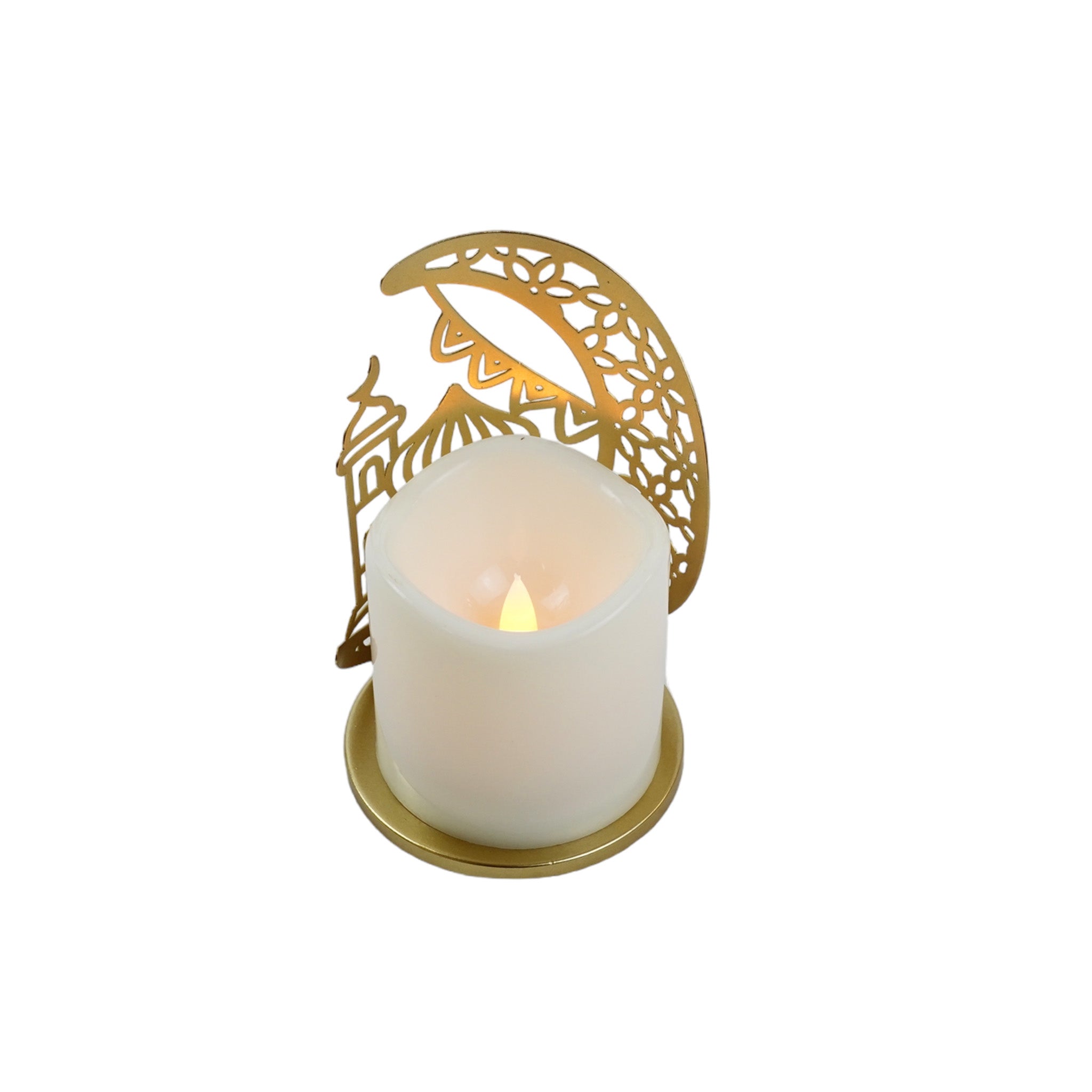 • Metal Gold frame, plastic candle with Cut out Crescent Masjid