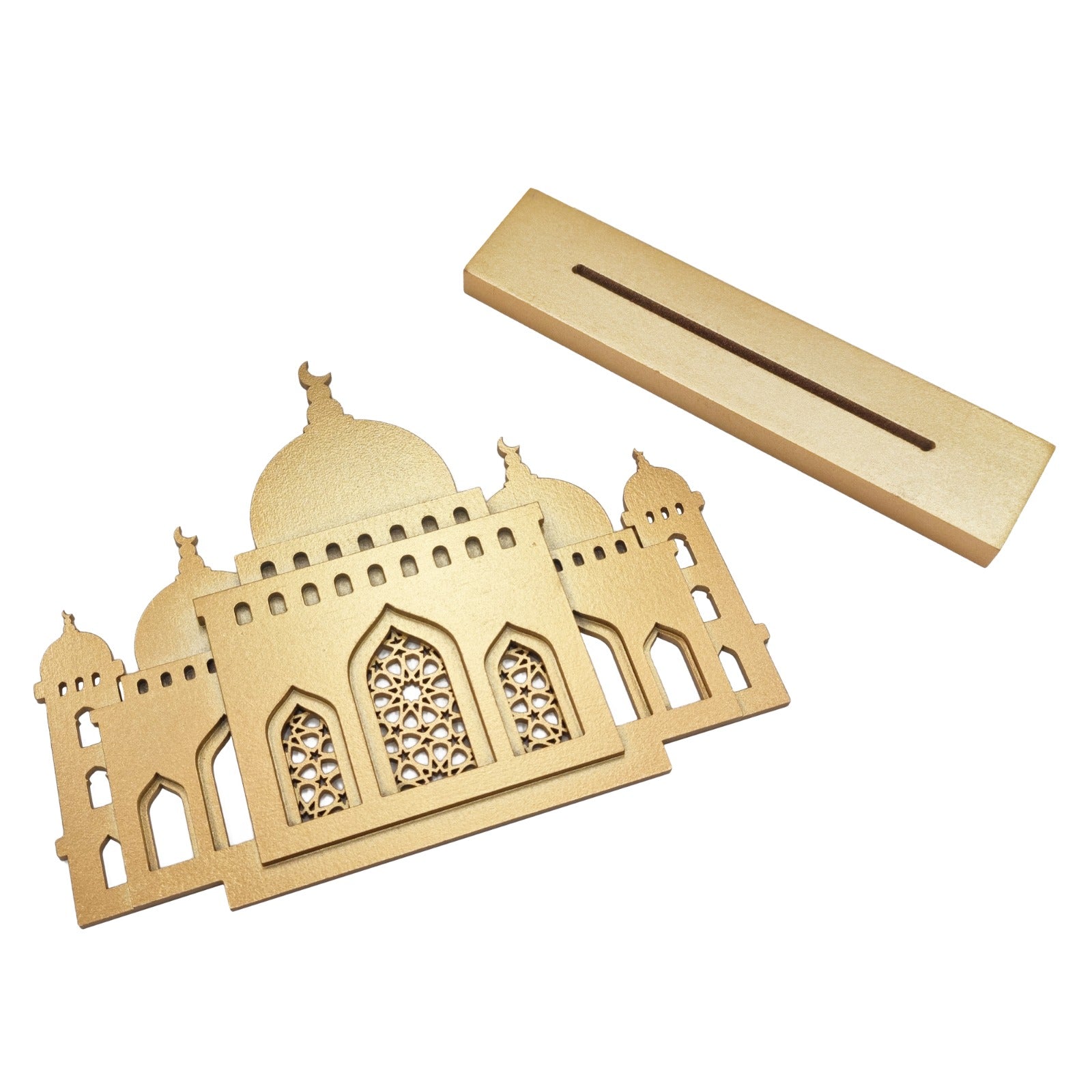 • Decorate your home in Eid & Ramadan with our Matte Gold Wooden Mosque Table Centre Decoration