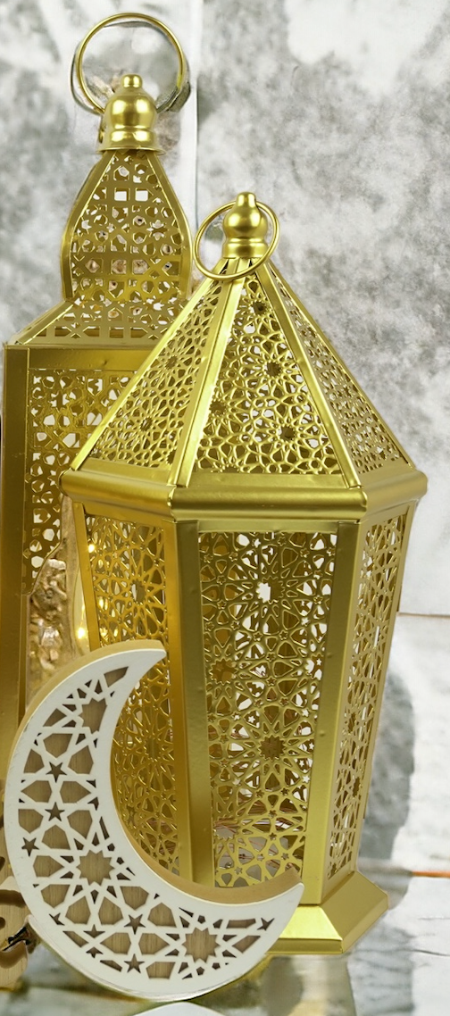 Medium Brushed Gold Hexagon MINARET LED Light Metal Lantern (20207-1)