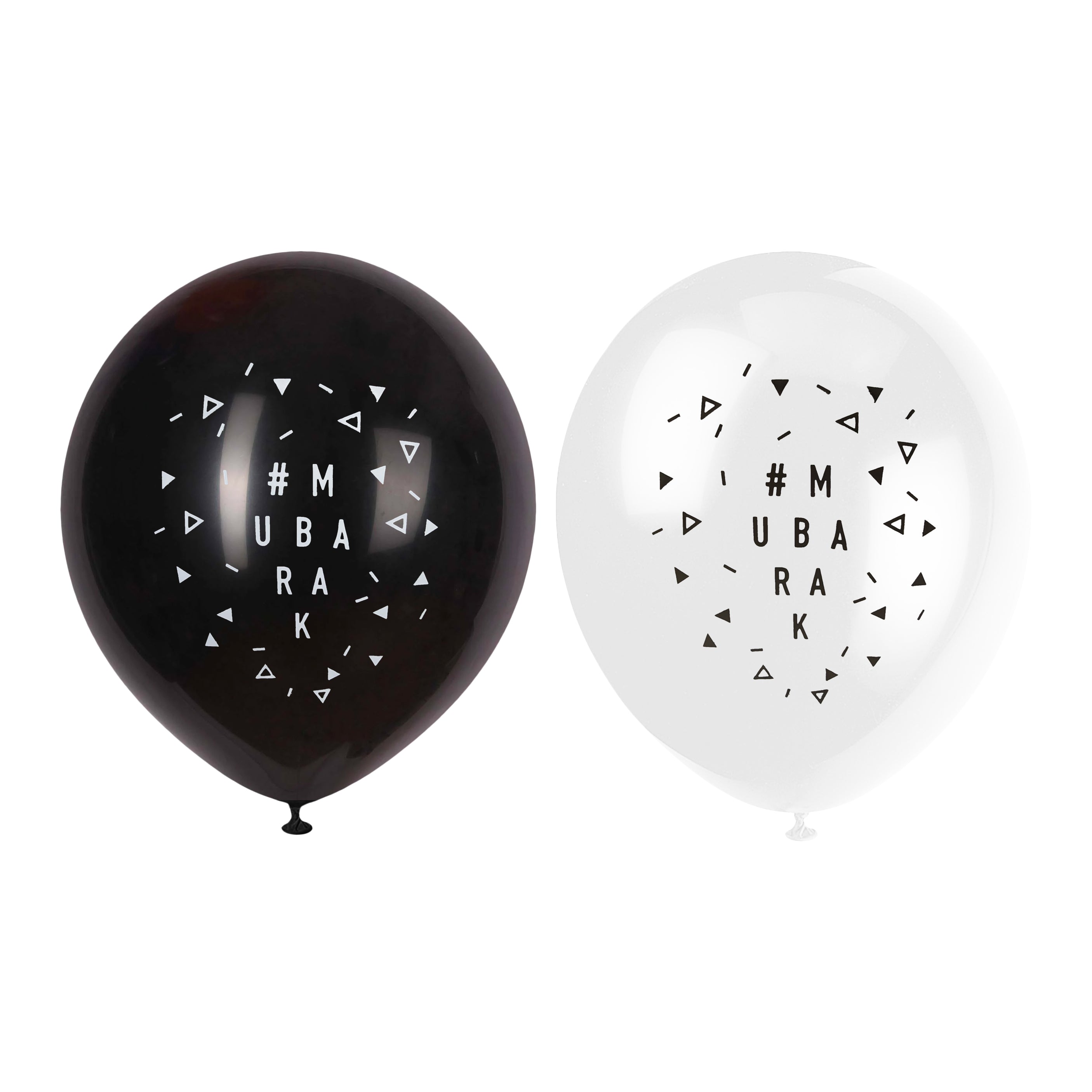 Black & White Latex #Mubarak Party Balloons (12 Pack)