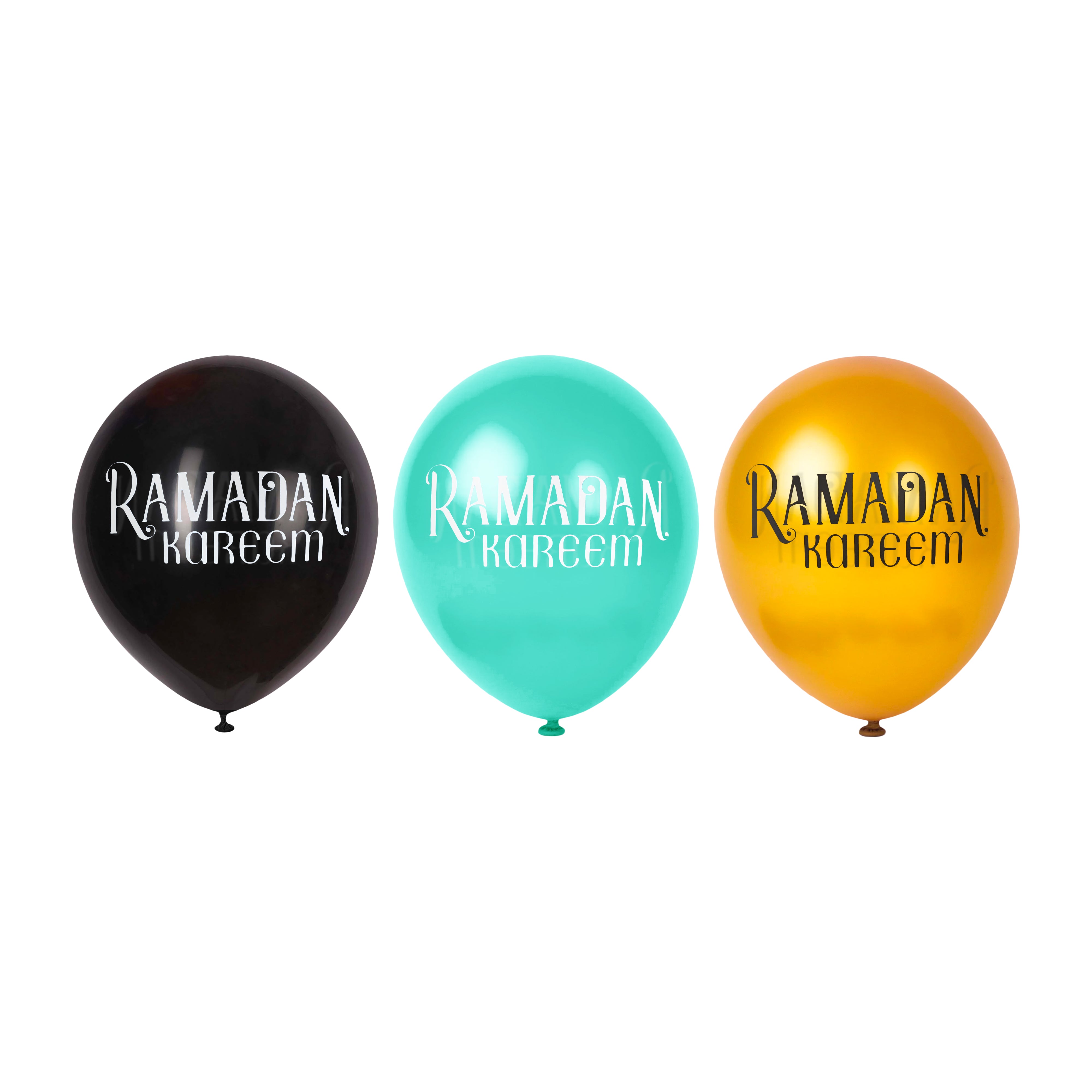• High quality printed Gold, Black & Teal latex balloons - Ideal for Eid parties & events.