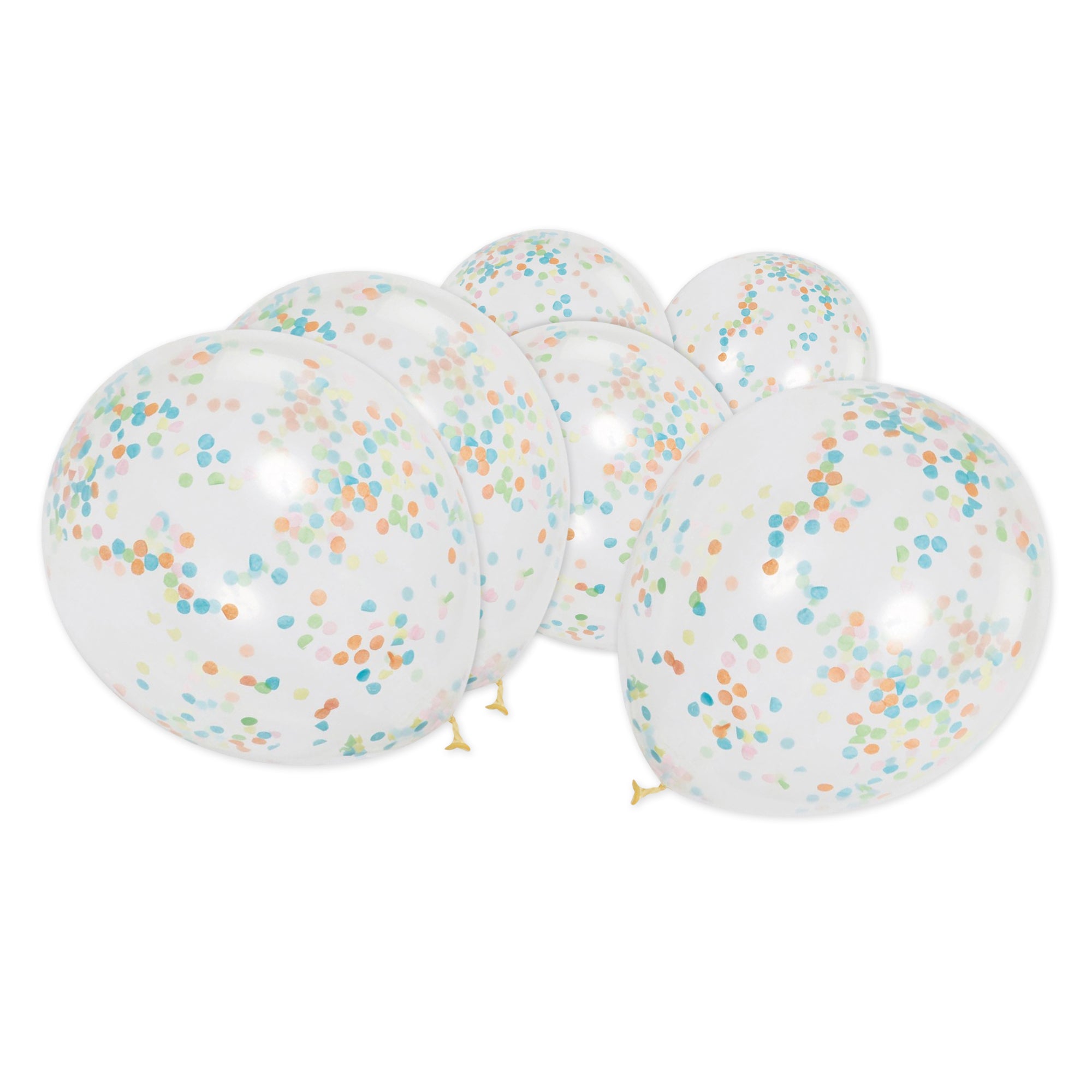 • Pack of 9 clear / transparent quality balloons with multicolour confetti inside