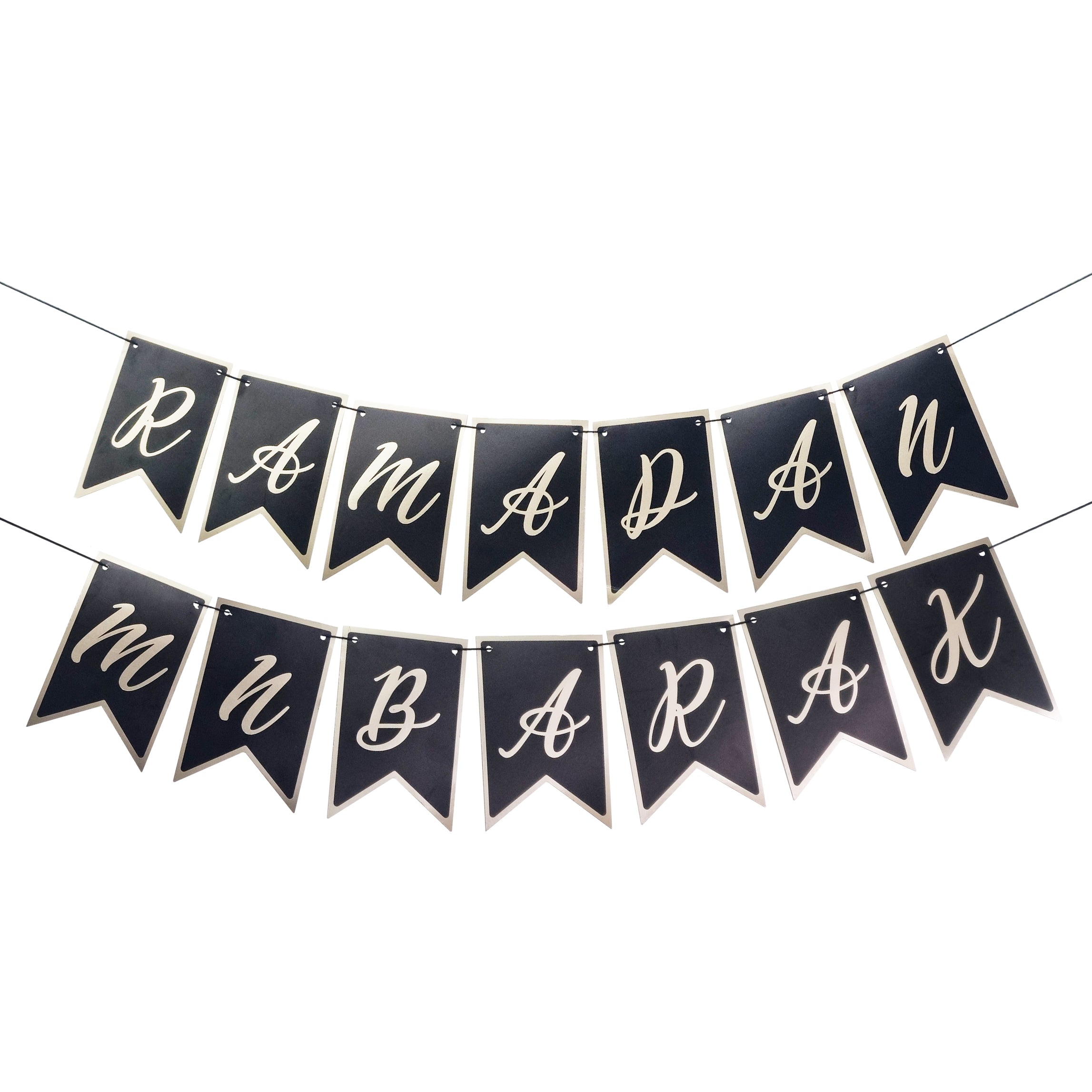 Black & Metallic Taupe 'Ramadan Mubarak' Dovetail Pennant Card Bunting - 2m