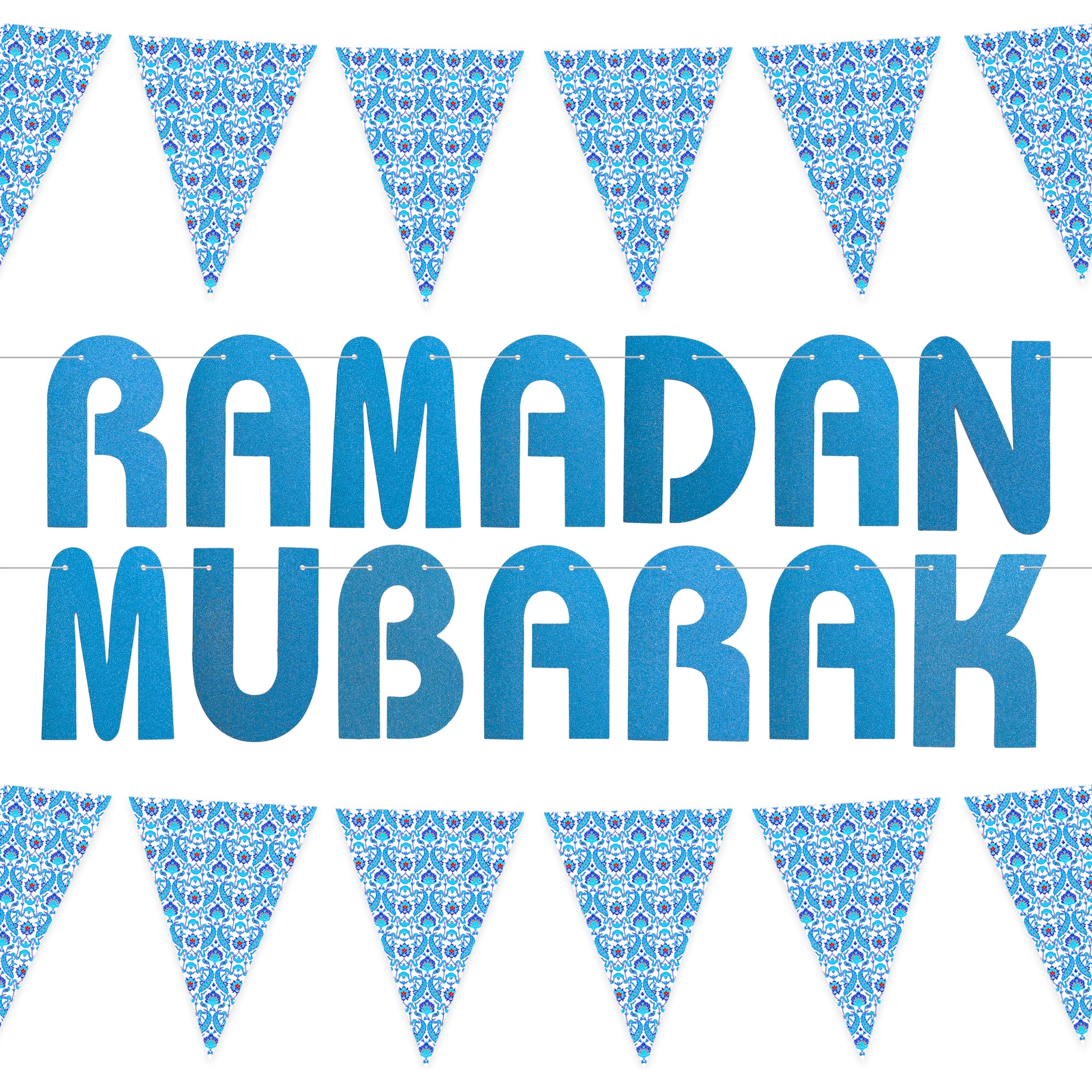 Blue Glitter Letter Ramadan Mubarak & Blue Ottoman Pattern Bunting