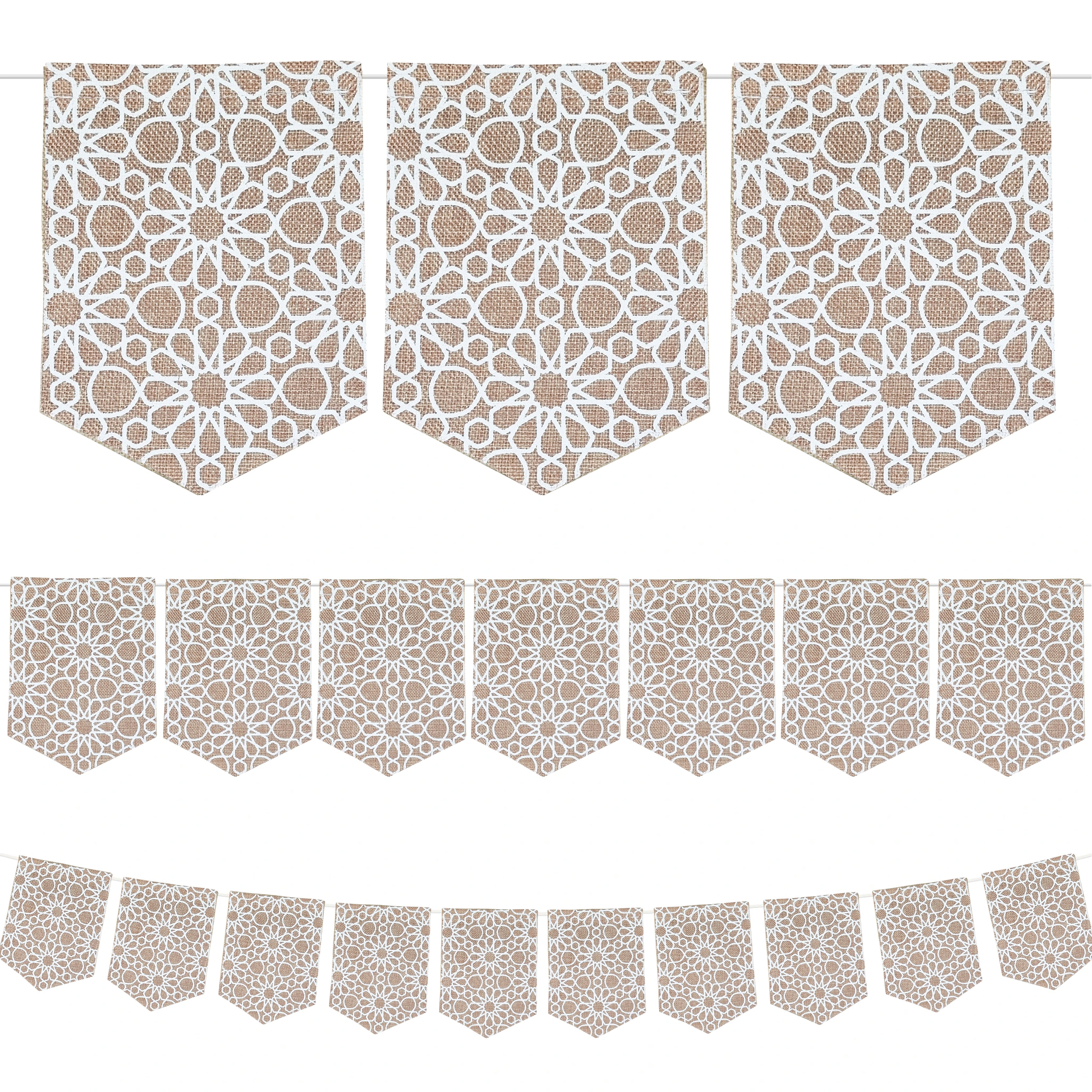 White Floral Pattern Ramadan & Eid Hessian Bunting - 2 meters