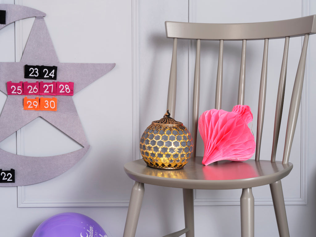 Crescent Moon Ramadan Calendar, Pink Bunting, Paper Lanterns & Balloons Decoration Set
