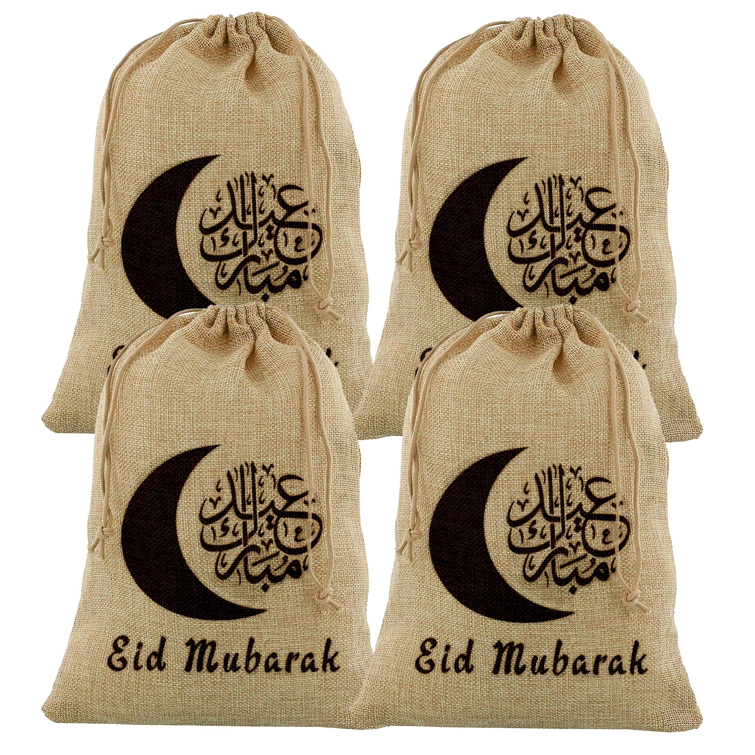 4pc Large Arabic Moon Eid Text Hessian Gift Sacks (60x40cm)