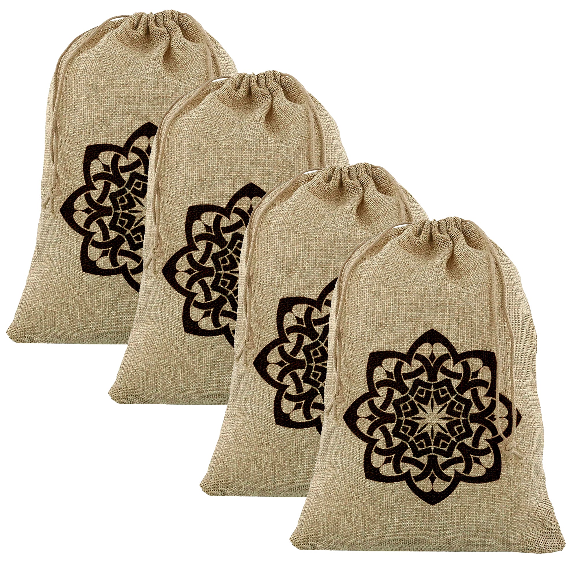 4pc Medium Islamic Geometric Flower Hessian Eid Gift Sacks (60x40cm)