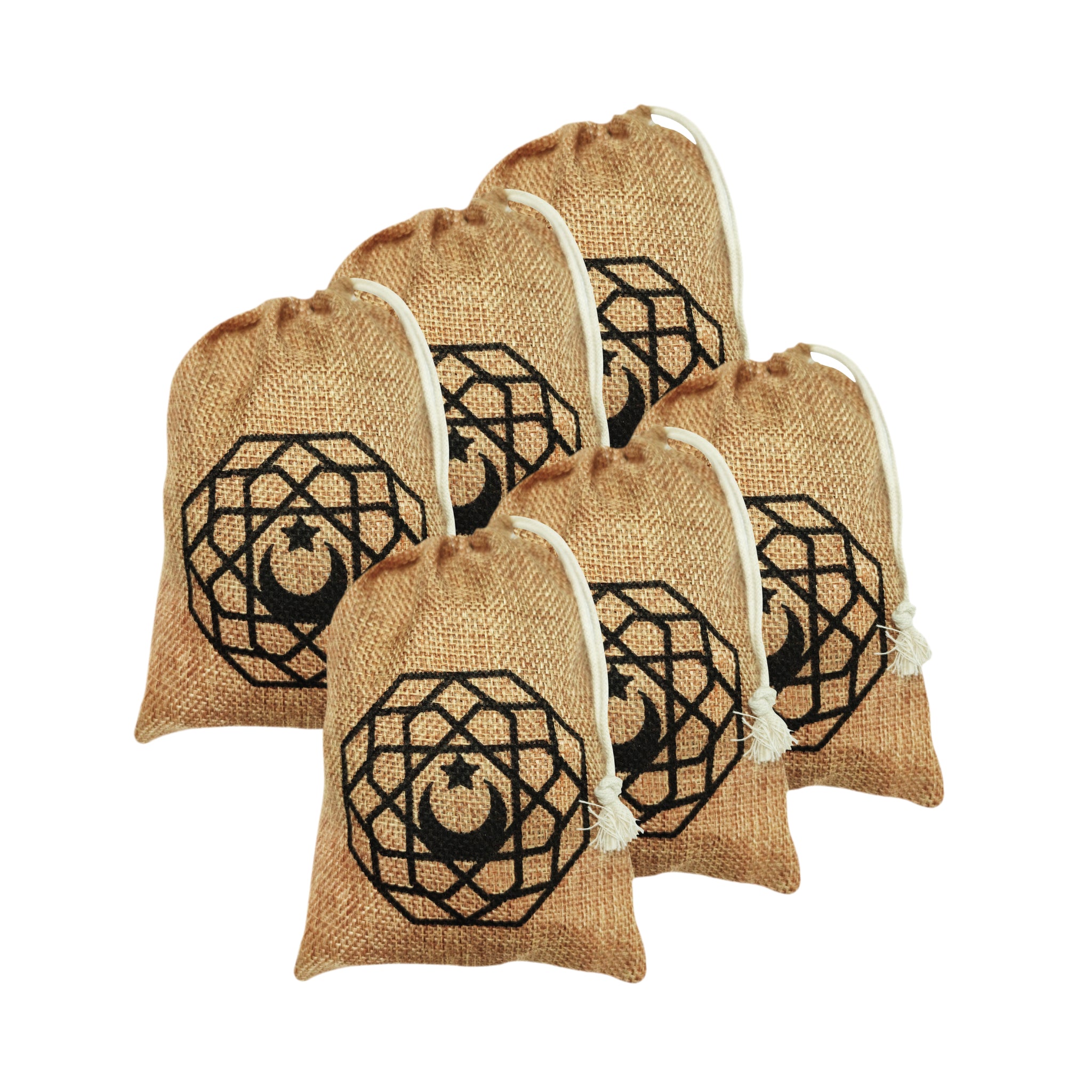 Pack of 6 Geometric Moon Mini Hessian Pull String Gift Pouches (15x12cm)