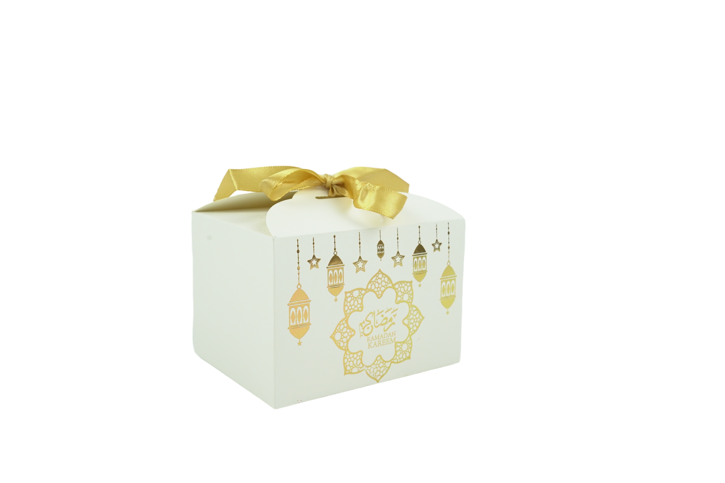 • White Metallic Gold Ramadan Kareem Gift Favour with Gold Ribbon Boxes can be used for Eid, Ramadan, Umrah or Hajj