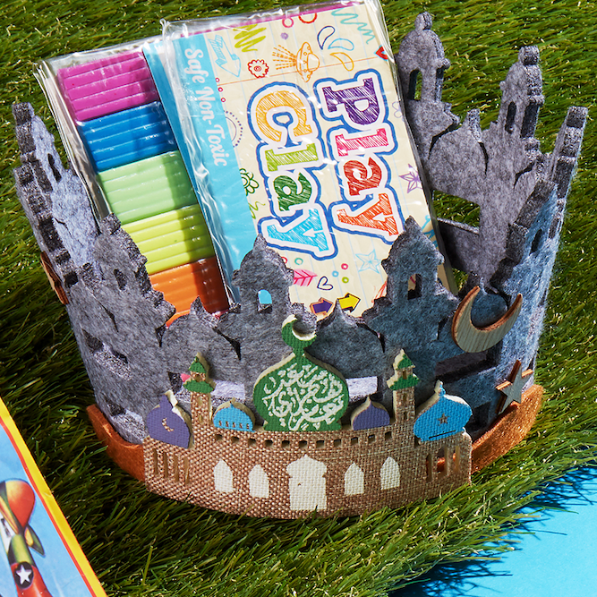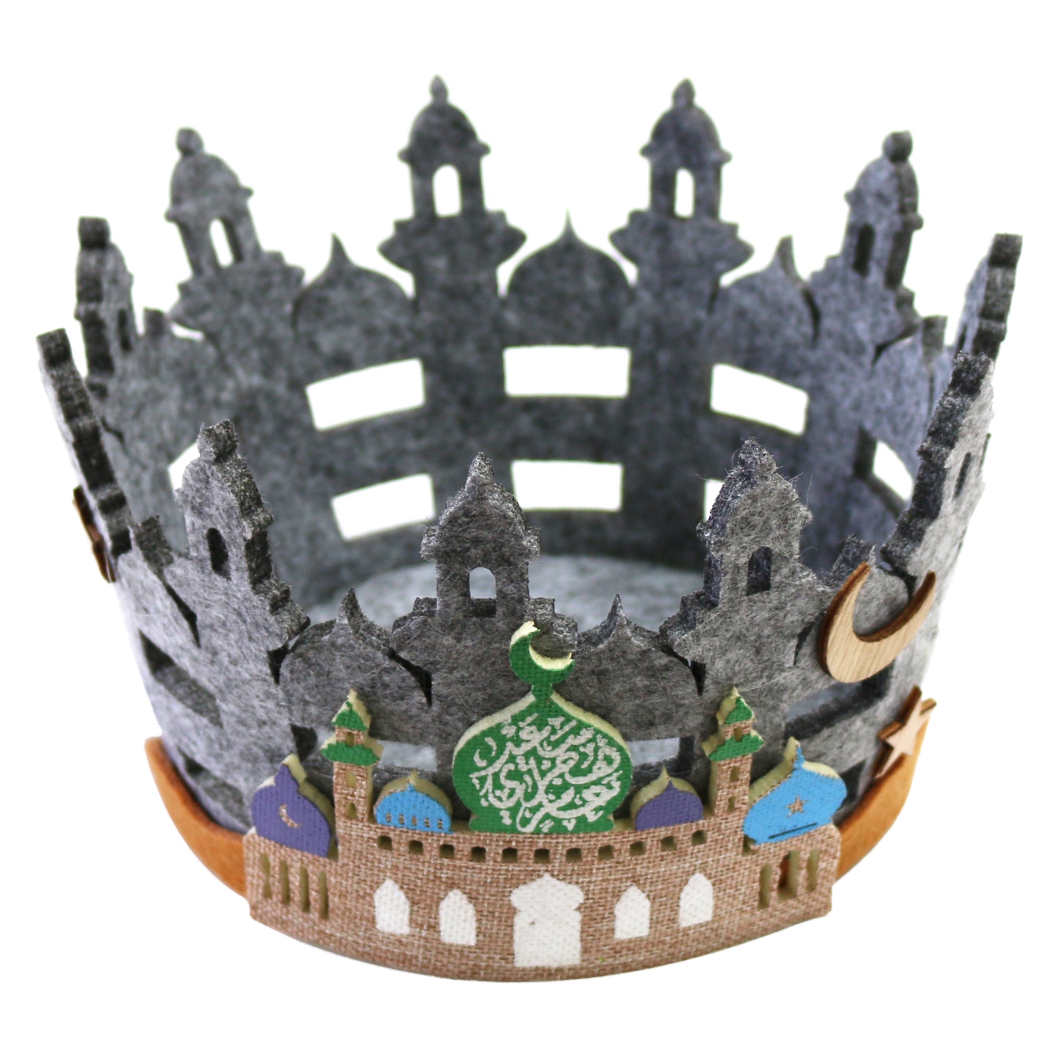 Grey Felt Moon, Star & Mosque Gift Crown Shaped Baskets (Pack of 2)