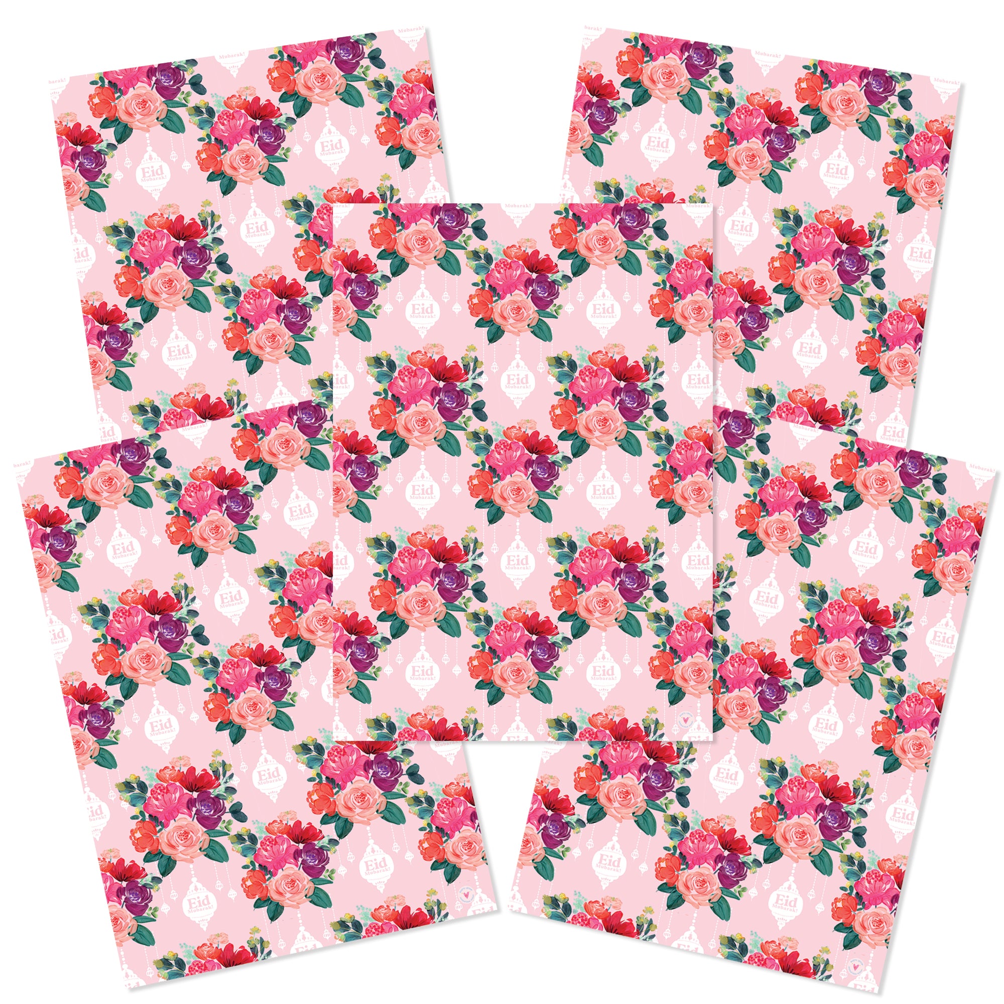 Pink Rose & Lantern Eid Mubarak Wrapping Paper - 70x50cm (5 Sheets)