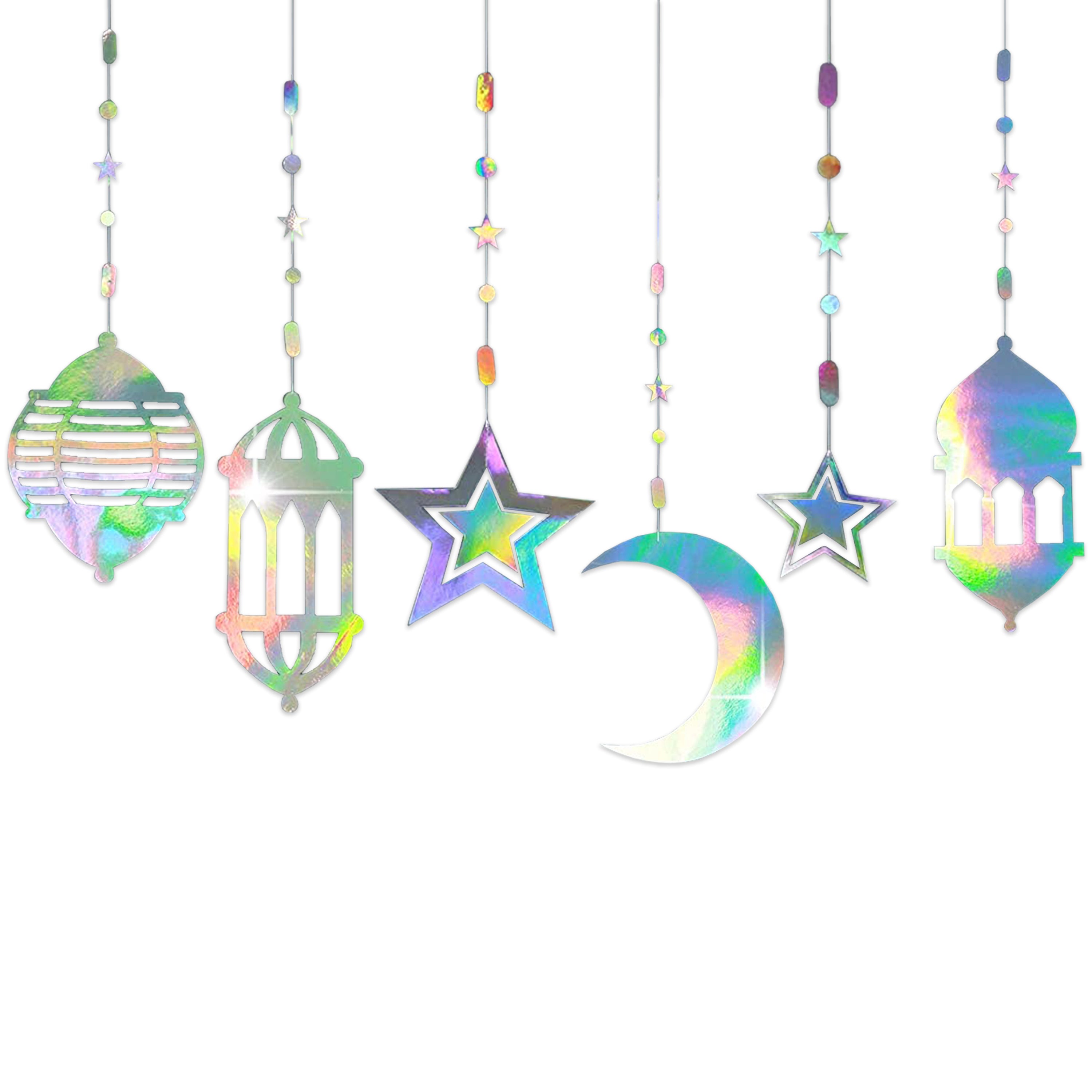 Pack of 12 Iridescent Lantern, Moon & Stars Hanging Mobile Decorations