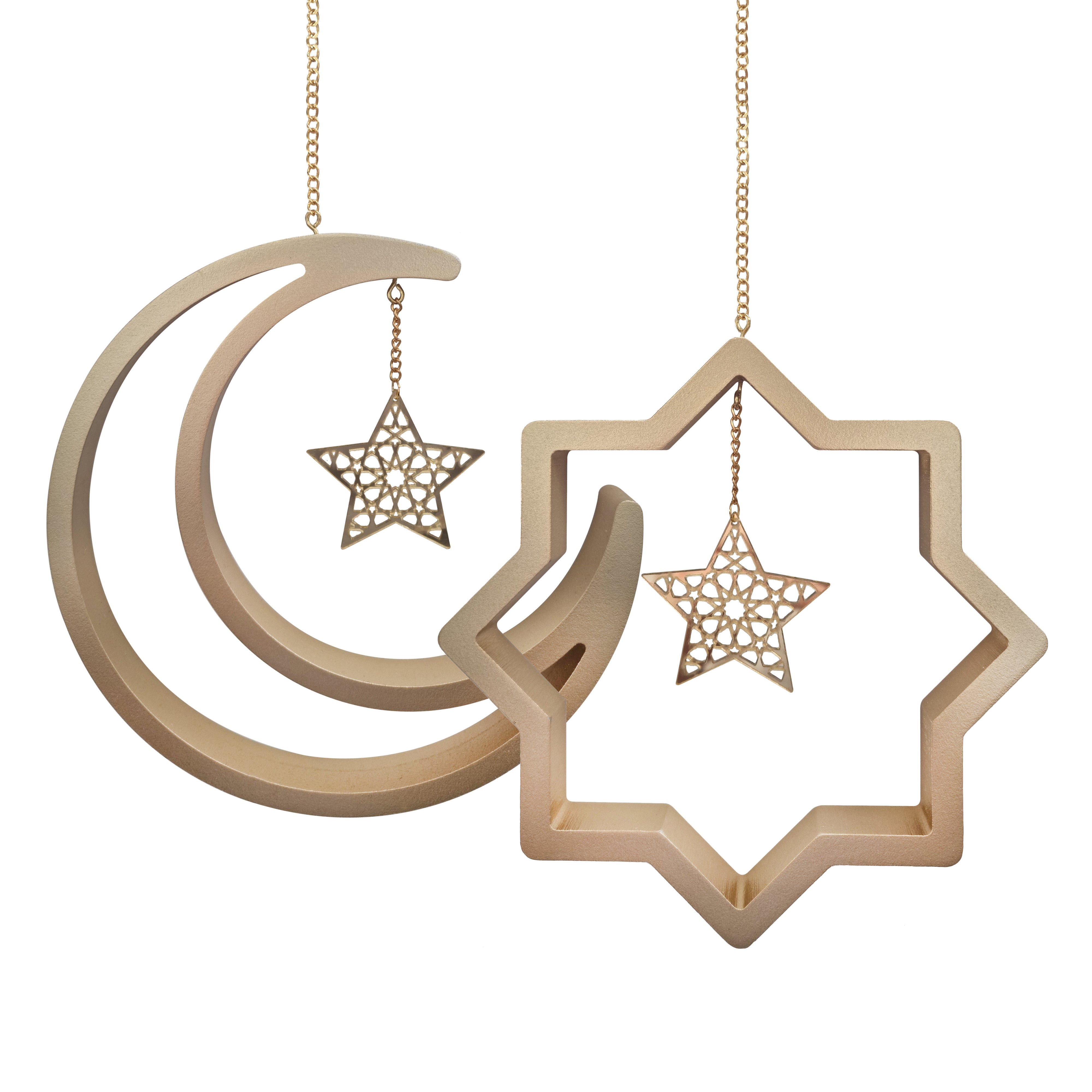 Pack of 2 Gold Crescent Moon & Star Hanging Eid Decorations