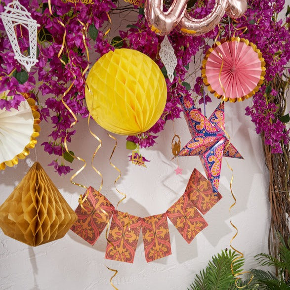 Pack of 2 Gold Paper Hanging Honeycomb Diamond Lanterns Eid Bazaar Decoration