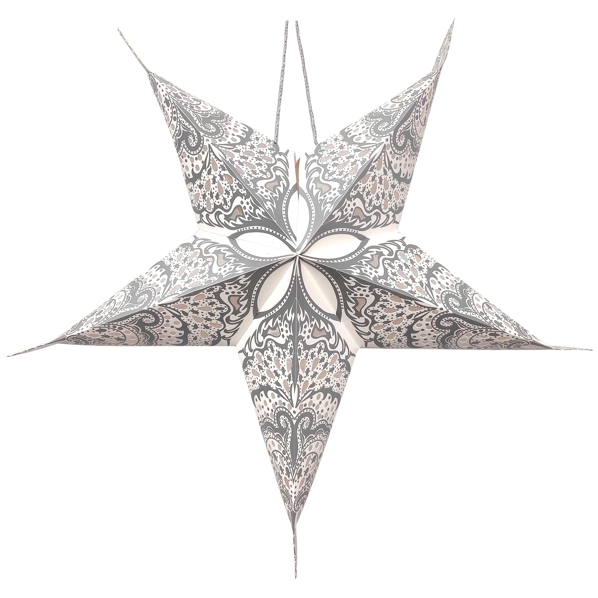 Pack of 2 Paisley Large Silver & White Paper Hanging Star Eid & Ramadan Decoration