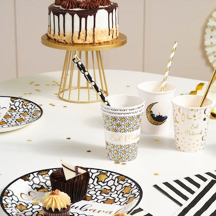 Black White & Gold Star 'Eid Mubarak' Disposable Paper Plate & Cups