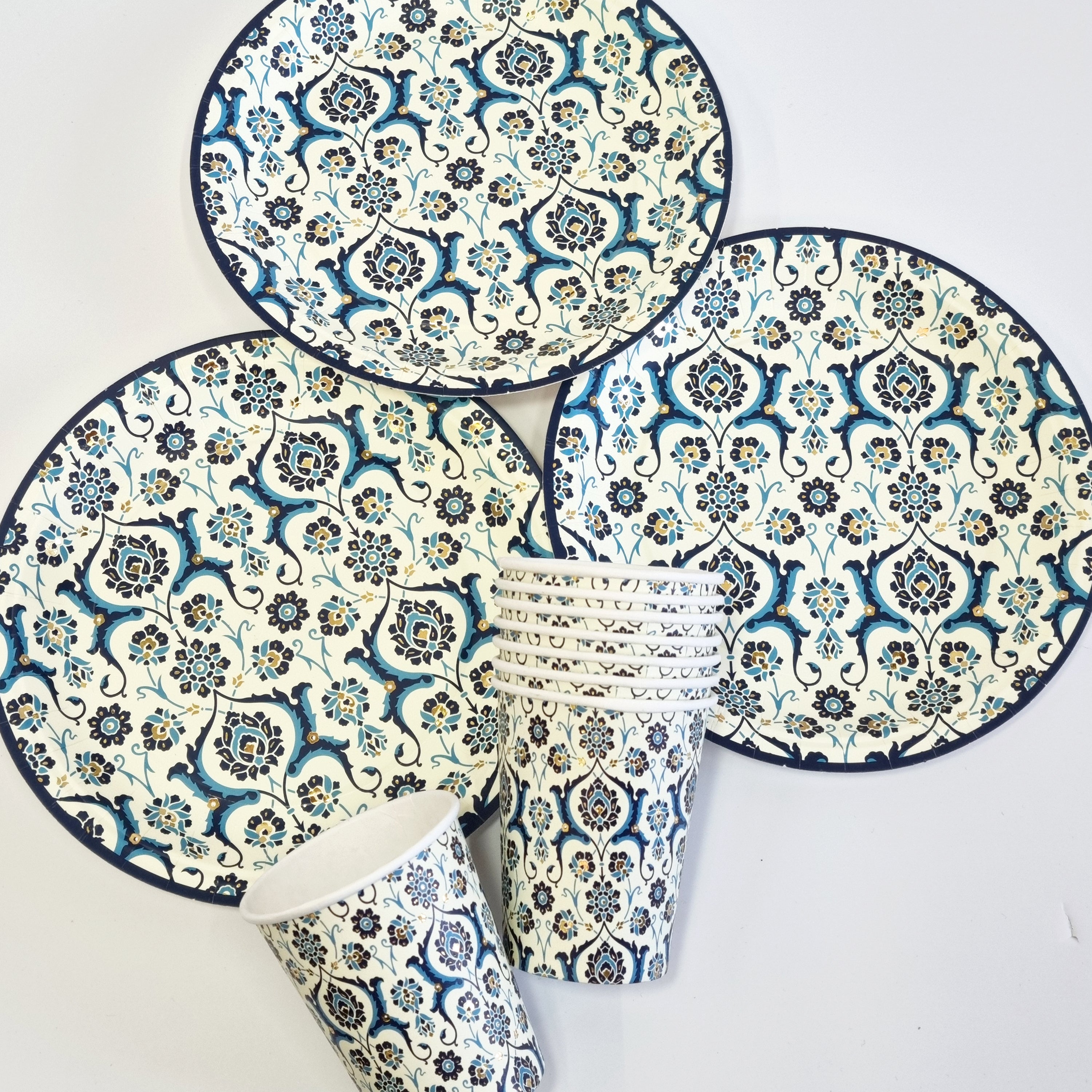 Blue & White Turkish Ottoman Style Disposable Paper Plate & Cup Set