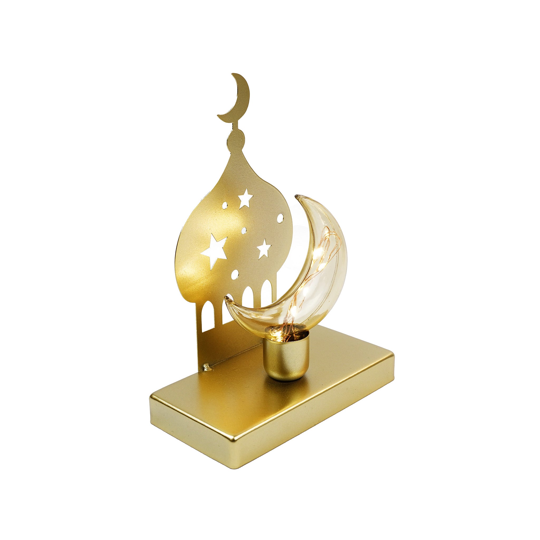 Brushed Gold Minaret Table Stand With Crescent Shape LED Light (23648-2)