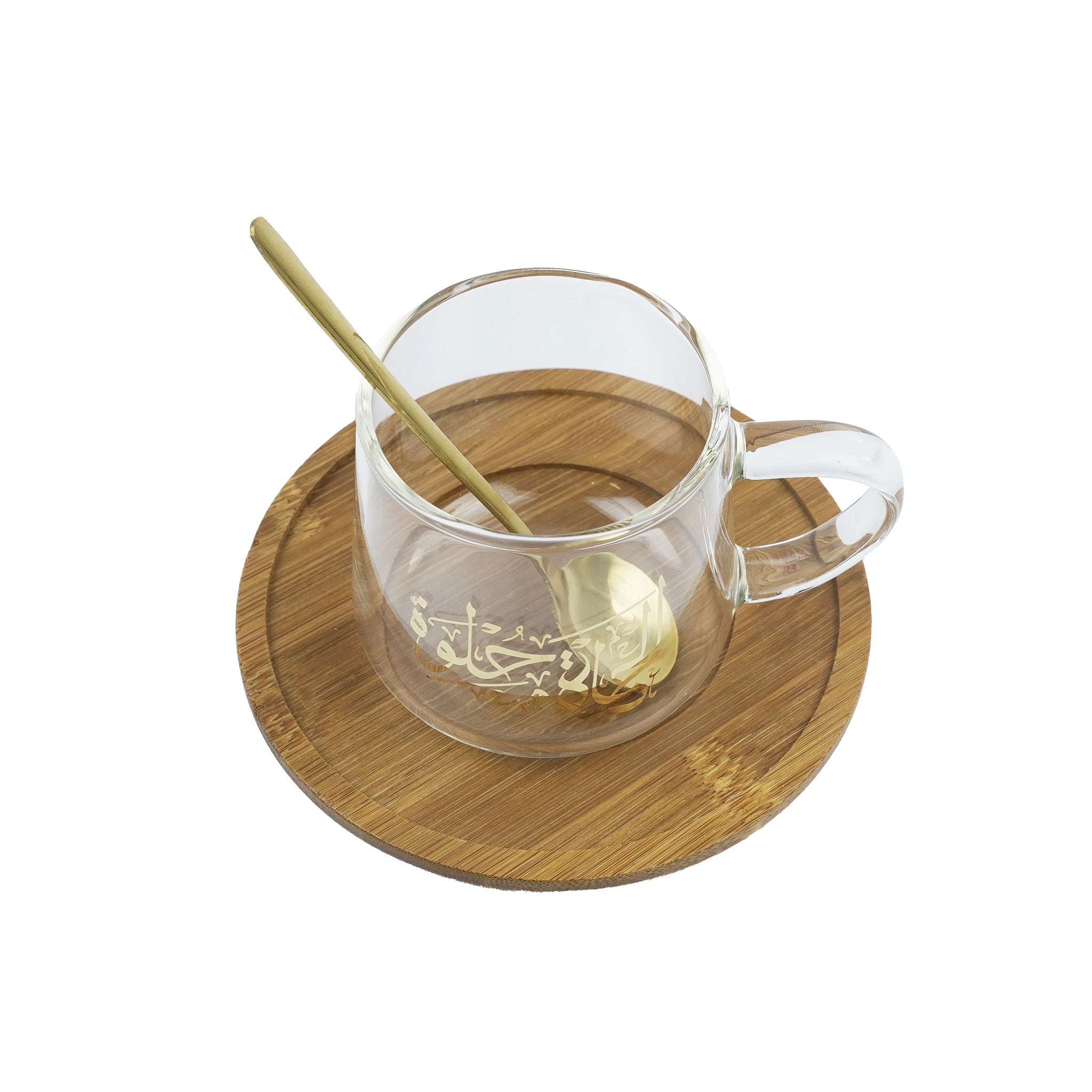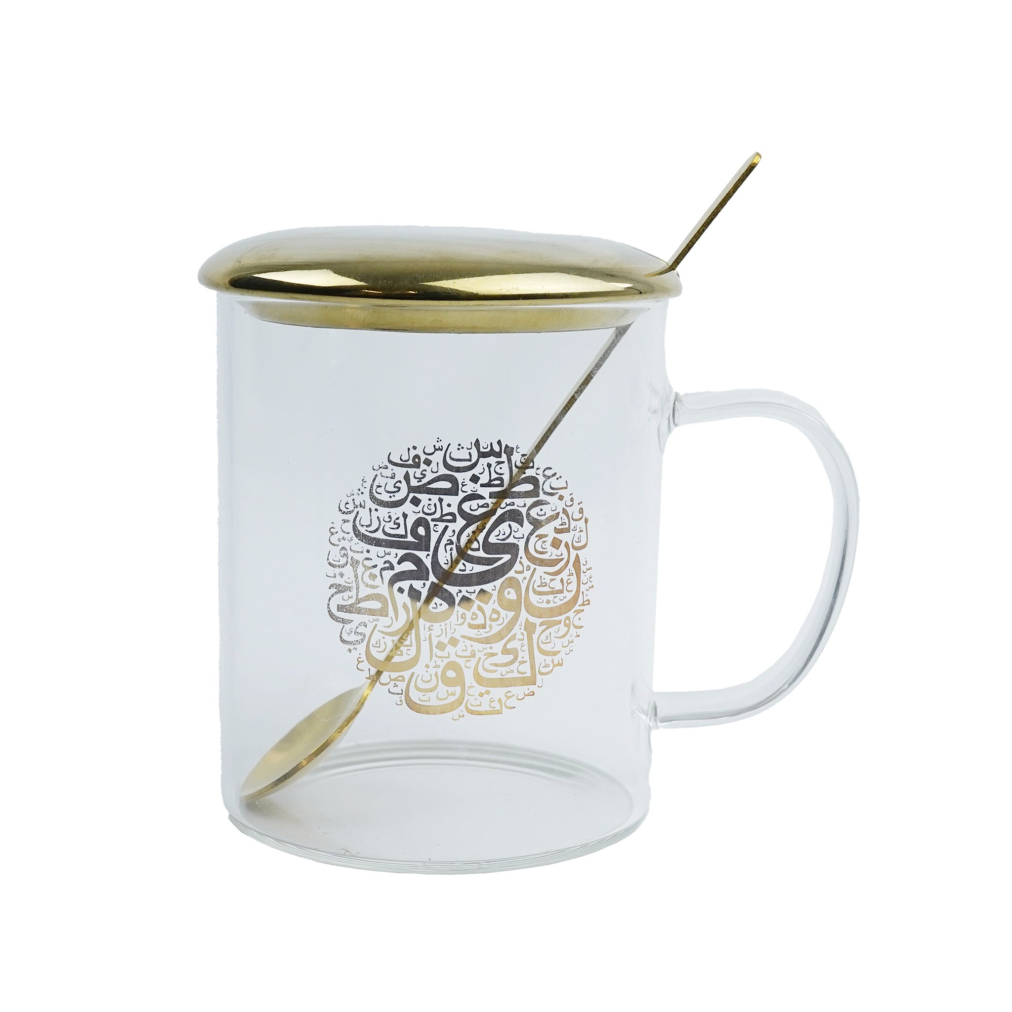 Glass Gold Arabic Calligraphy Mugs Plate-Spoon-Lid Options (BL)