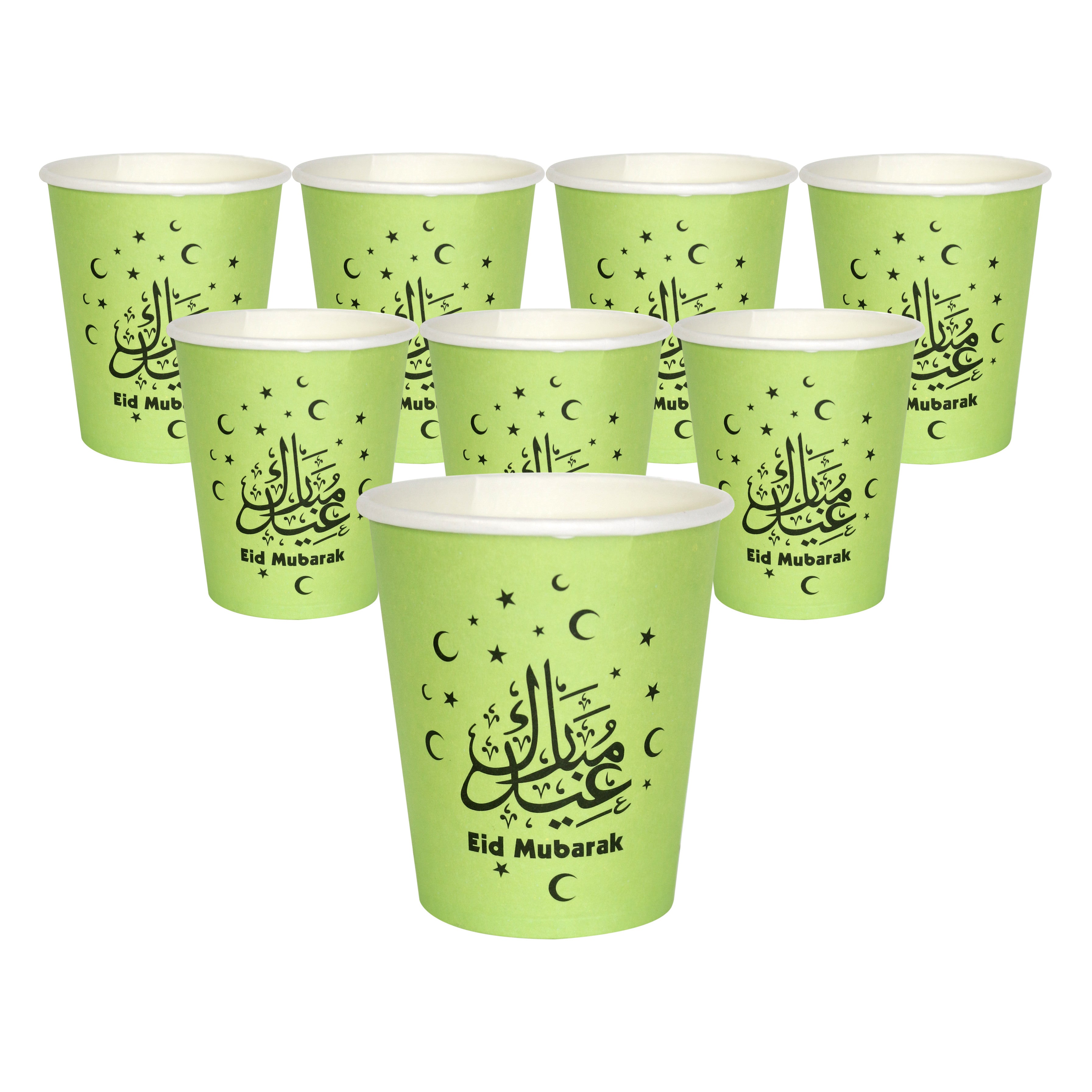 • Celebrate in style with our green'Eid Mubarak' paper cups.