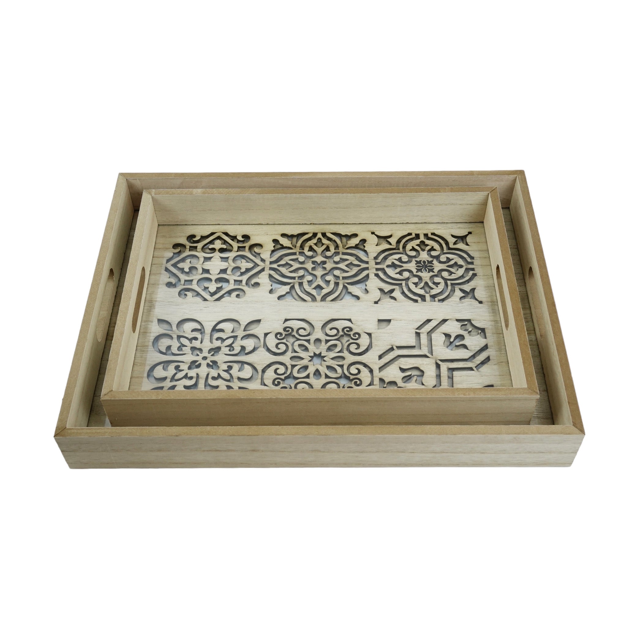2pc Set NATURAL Ottoman Tile Inlay Trays (0223-11)