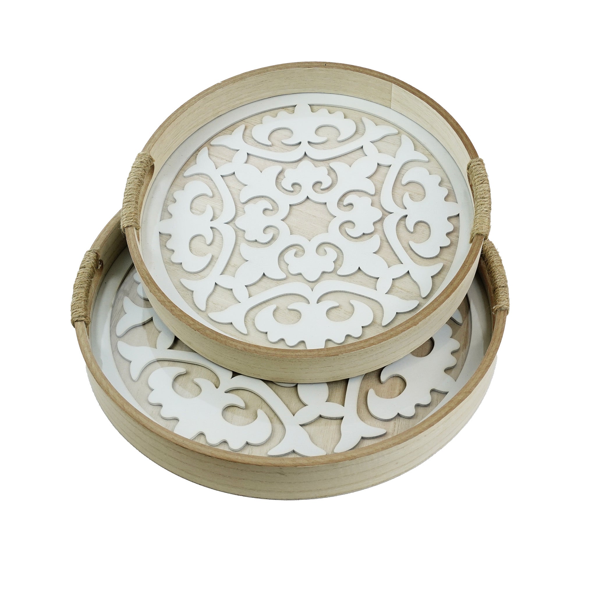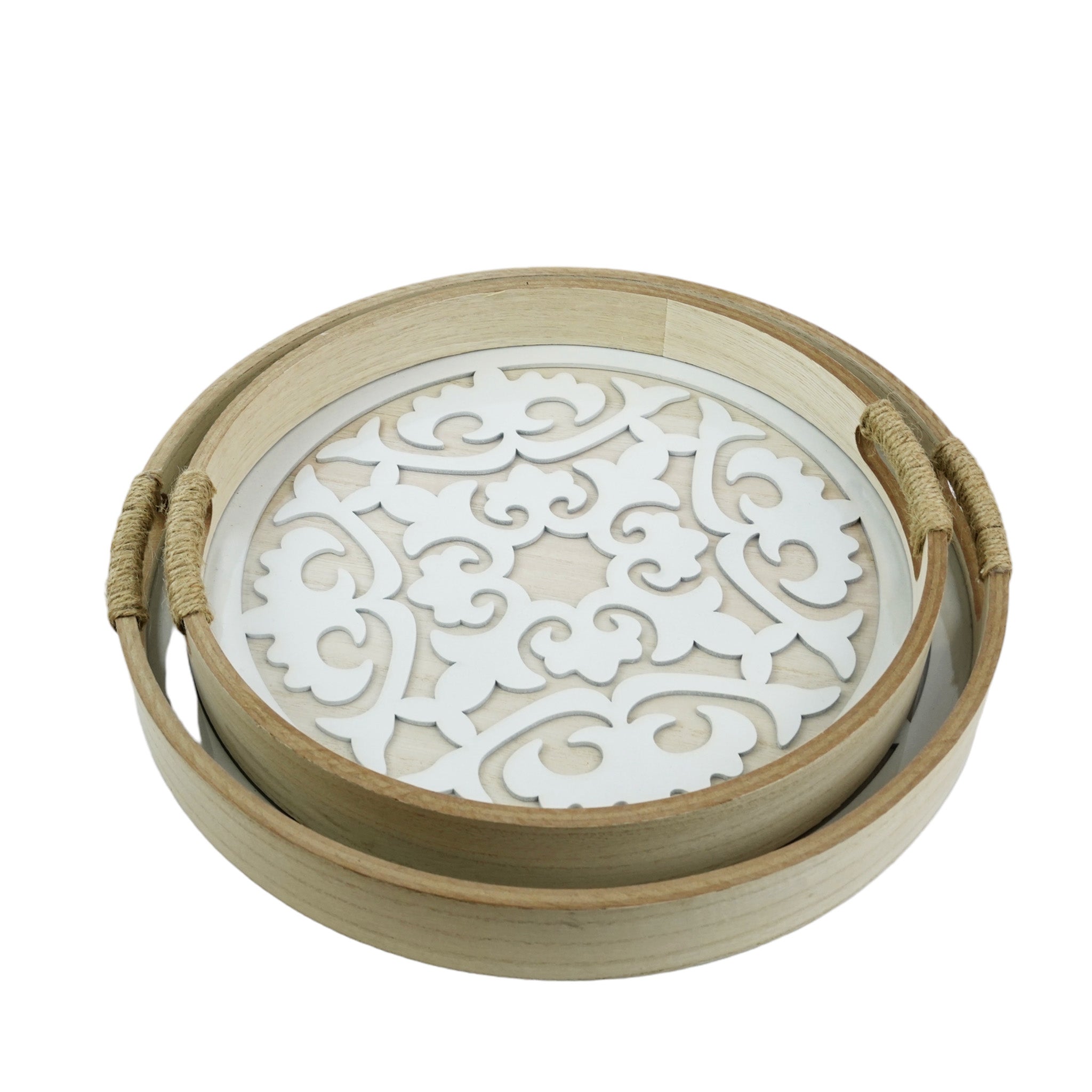 • Celebrate Eid in style with our Natural Wood & White inlay tray sets