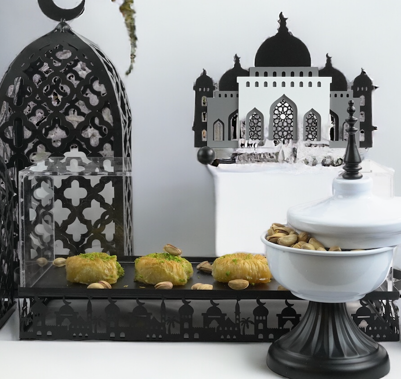 • Our Black Mosque Silhouette Metal Dessert Stand will really stand out for Iftar or Eid Bazaar!