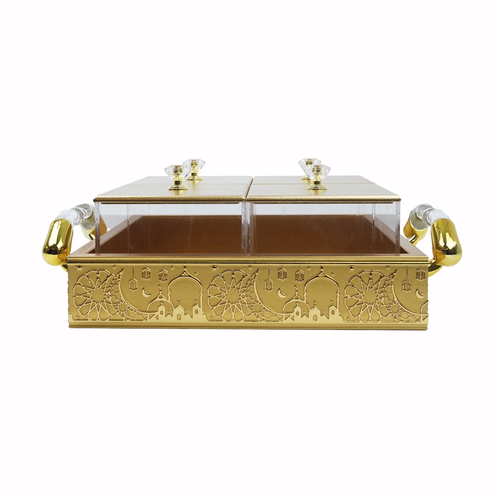 Gold Serving Tray with 4-Compartments with Lids (2319-5)
