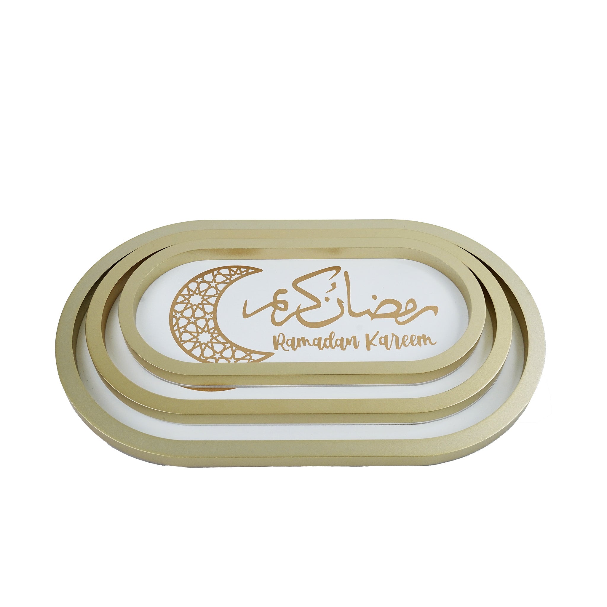 Oval Ramadan Kareem Set of 3 Gold Trays (757-31)