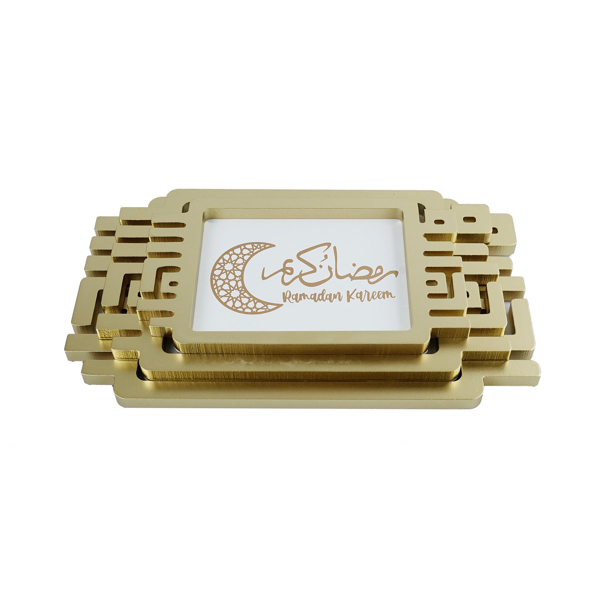 Rectangle ArtDecor Ramadan Kareem Set of 3 Gold Tray (757-33)