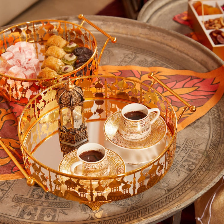 • Prepare the perfect Iftar with our gold mosque silhouette cutout tins.