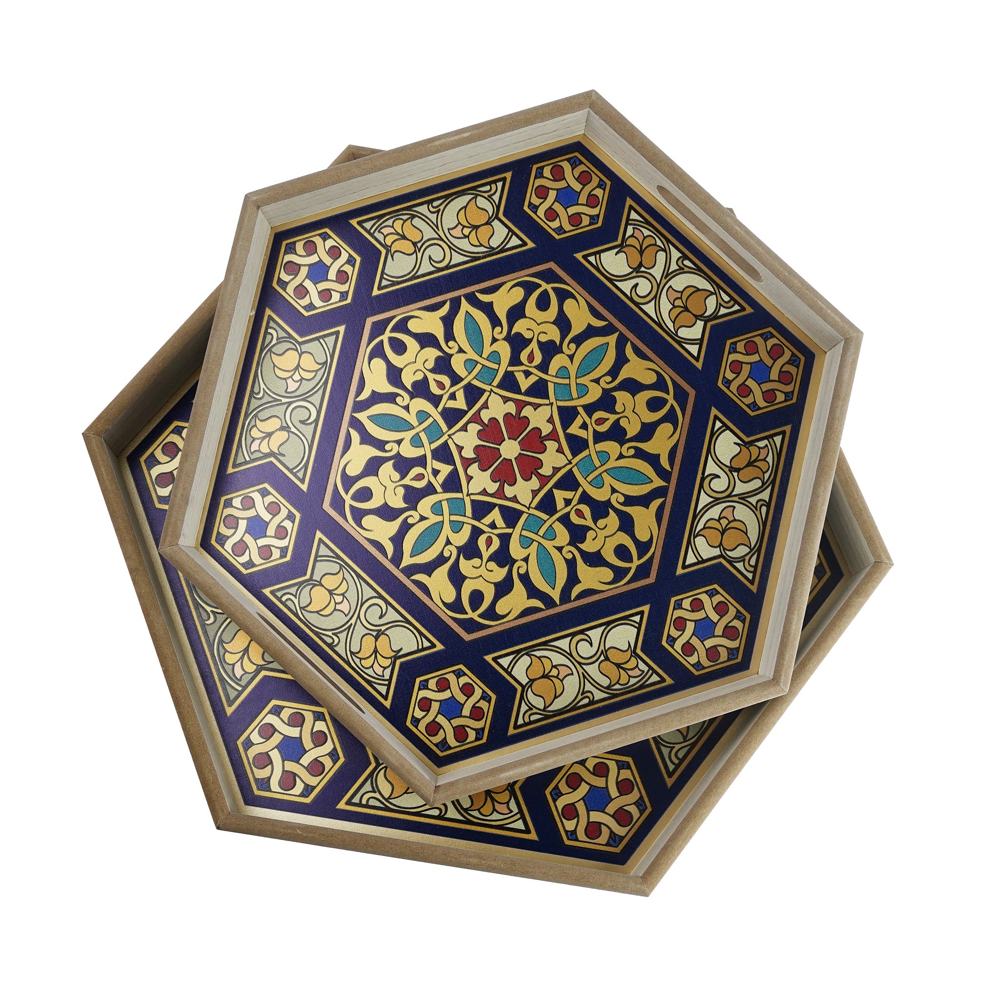 Set of 2 Mosaic Print Hexagonal Trays (2303-6AB)