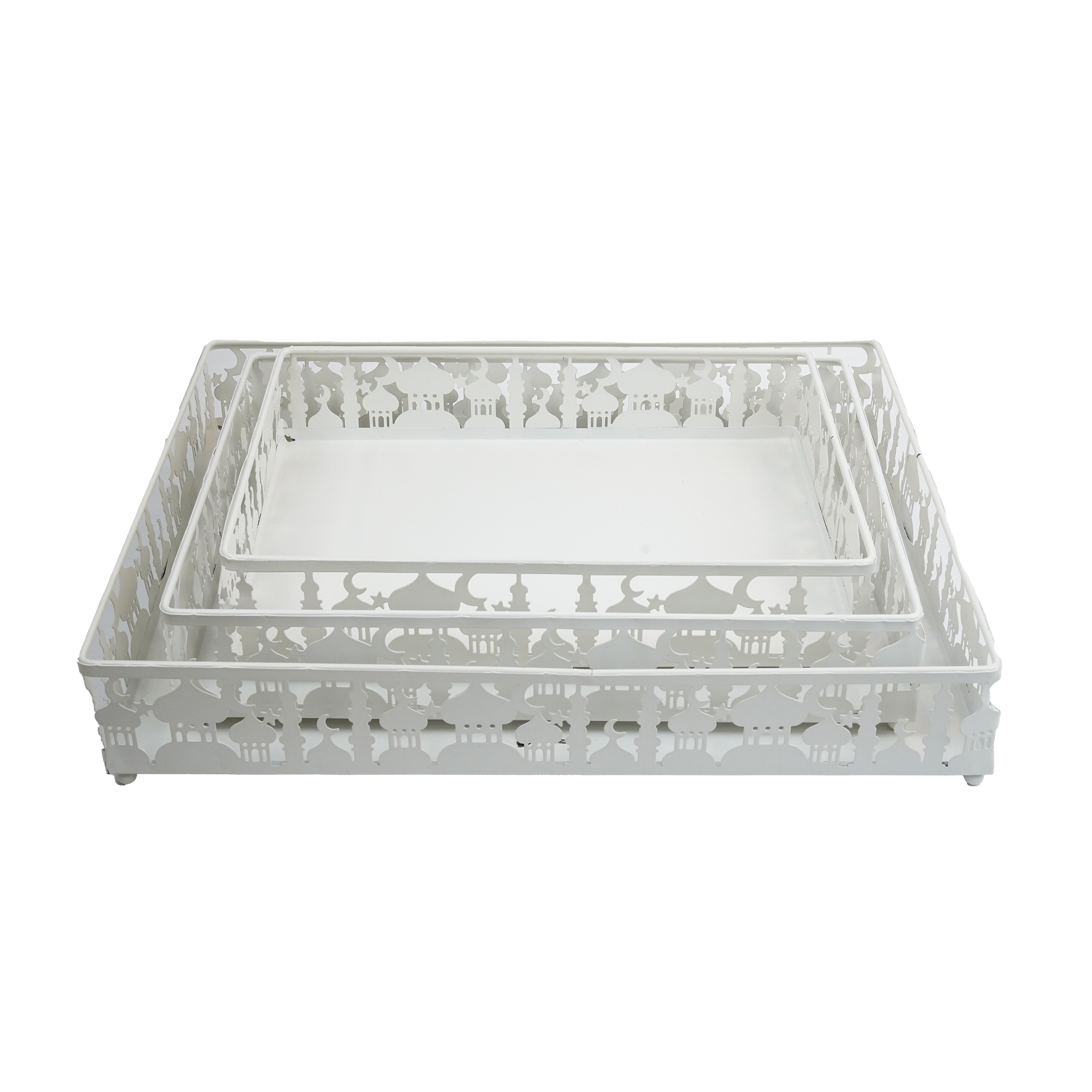 Set of 3 WHITE Rectangle Metal Cut Out Cake / Treat Tins (757-5)