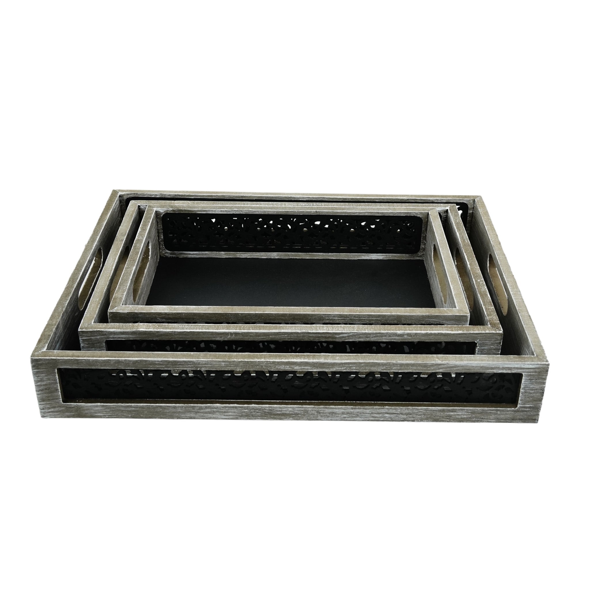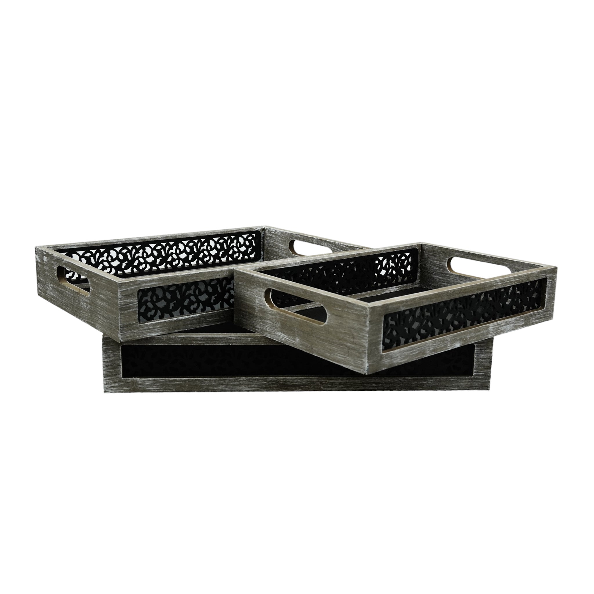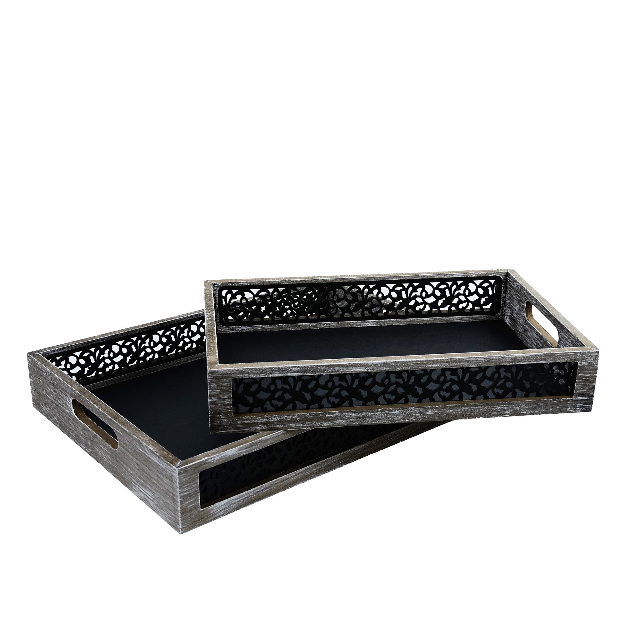 • Trays are made from durable wood with a eye catching ornate cutout pattern