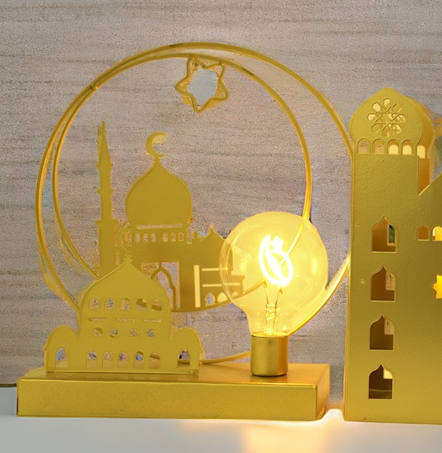 Brushed Gold Masjids Circle Star Tablescape LED Bulb Tablescape (15942)