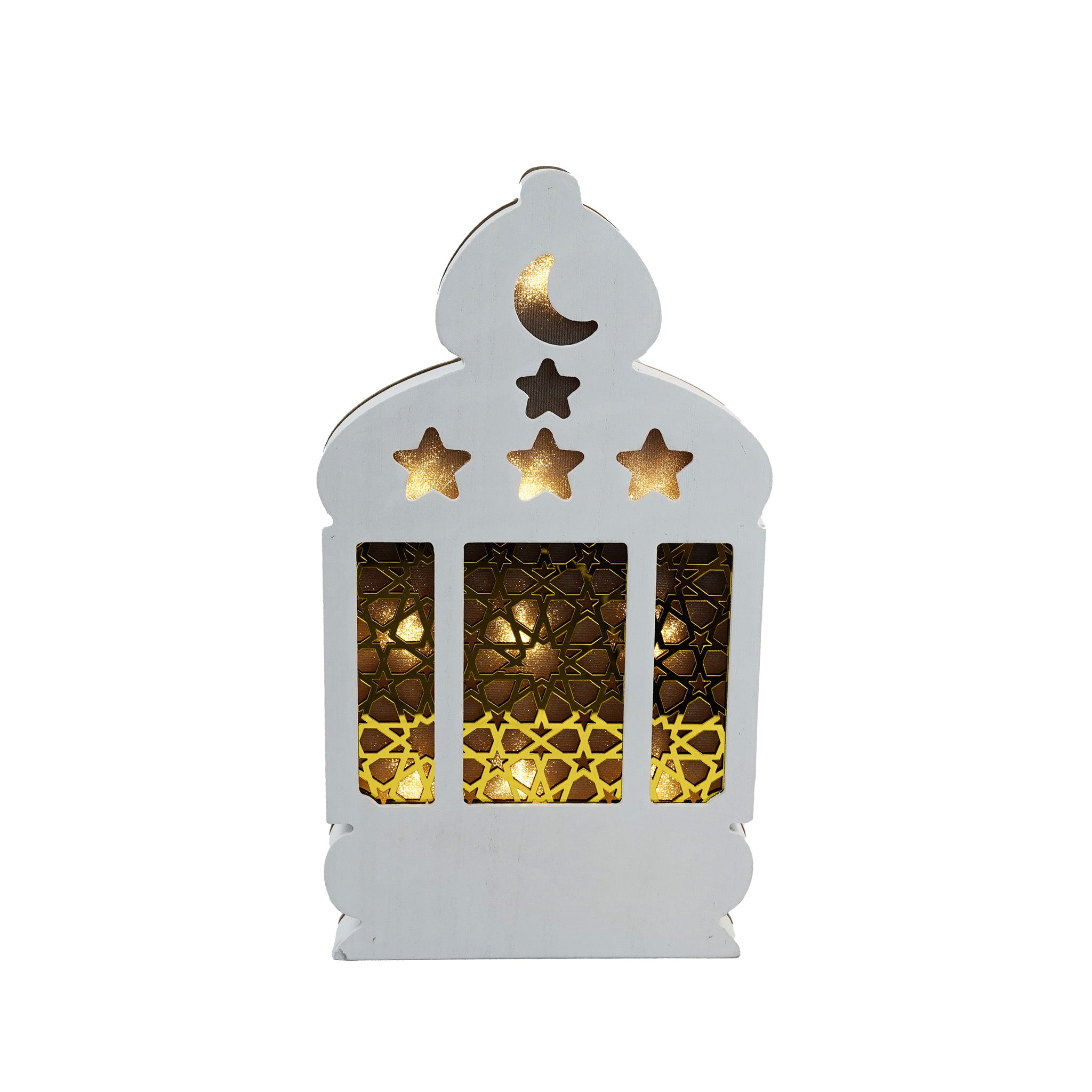 Geometric White MEDIUM Solid Wood Lantern Light Stand (757-88)