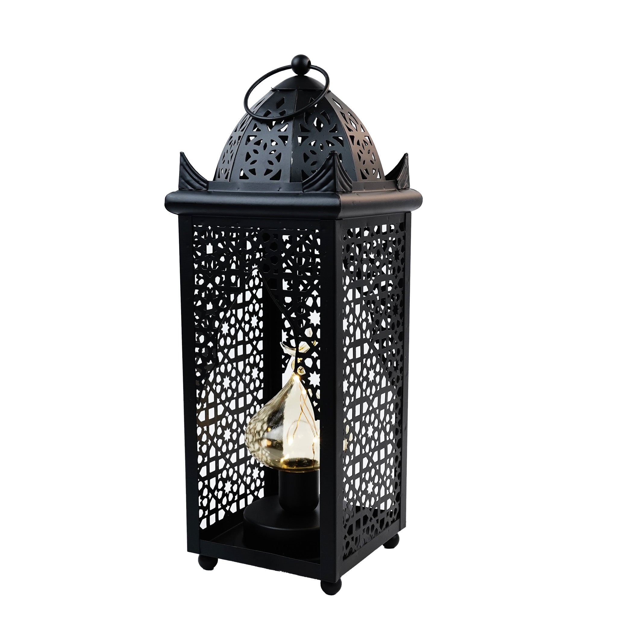 • Black LED bulb light lantern with Geometric Stencil Square Minaret