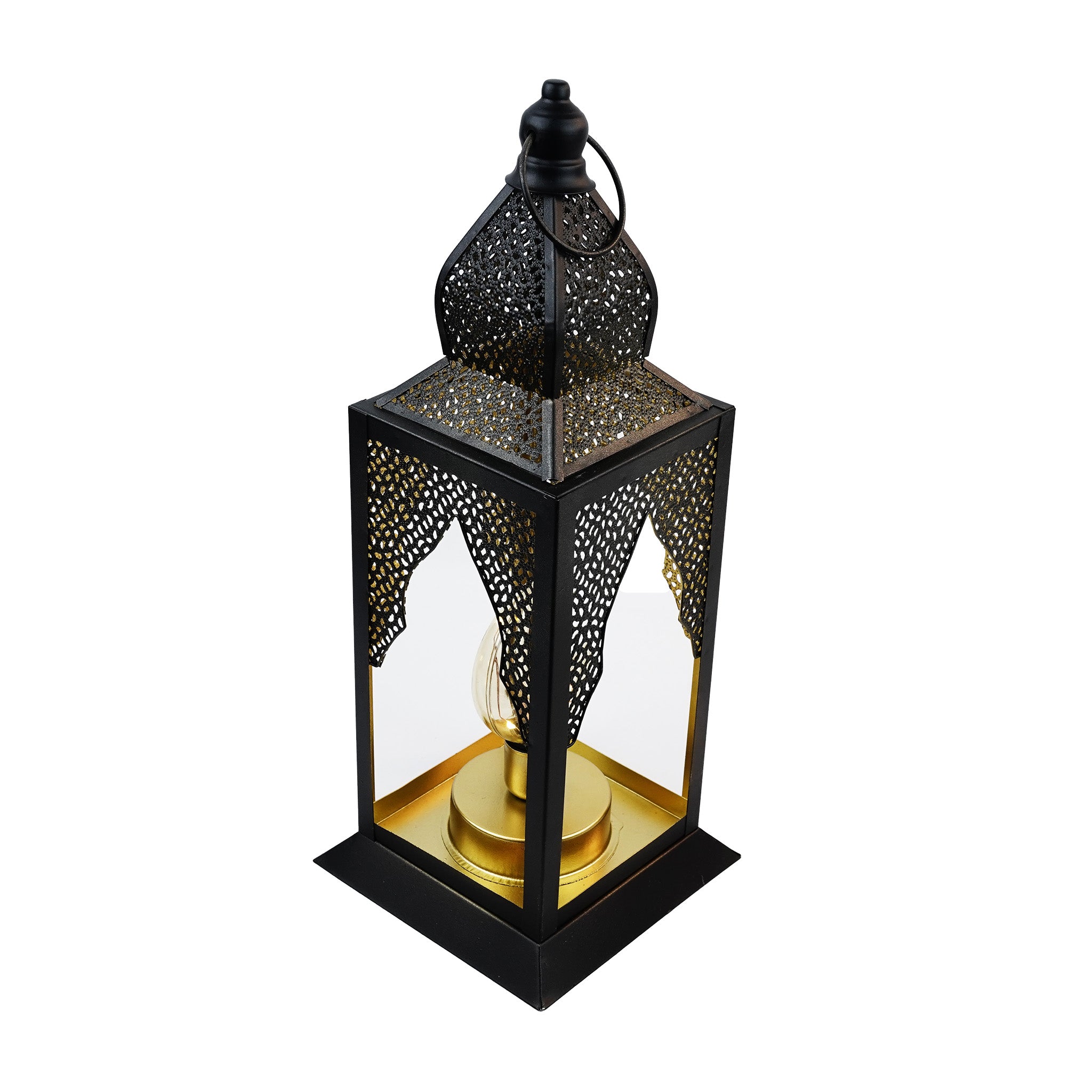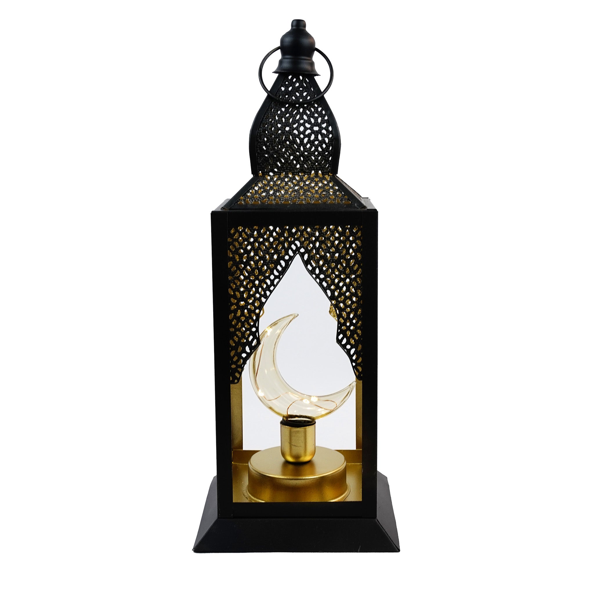 Large Black Minaret Moon Shape LED Bulb Metal Lantern (B22907-2)