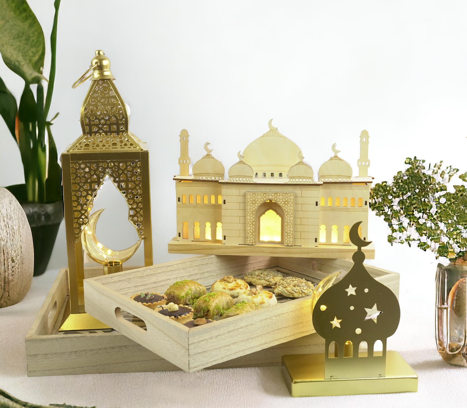 • Brushed Gold Led light lantern with Minaret Mosque cutout design